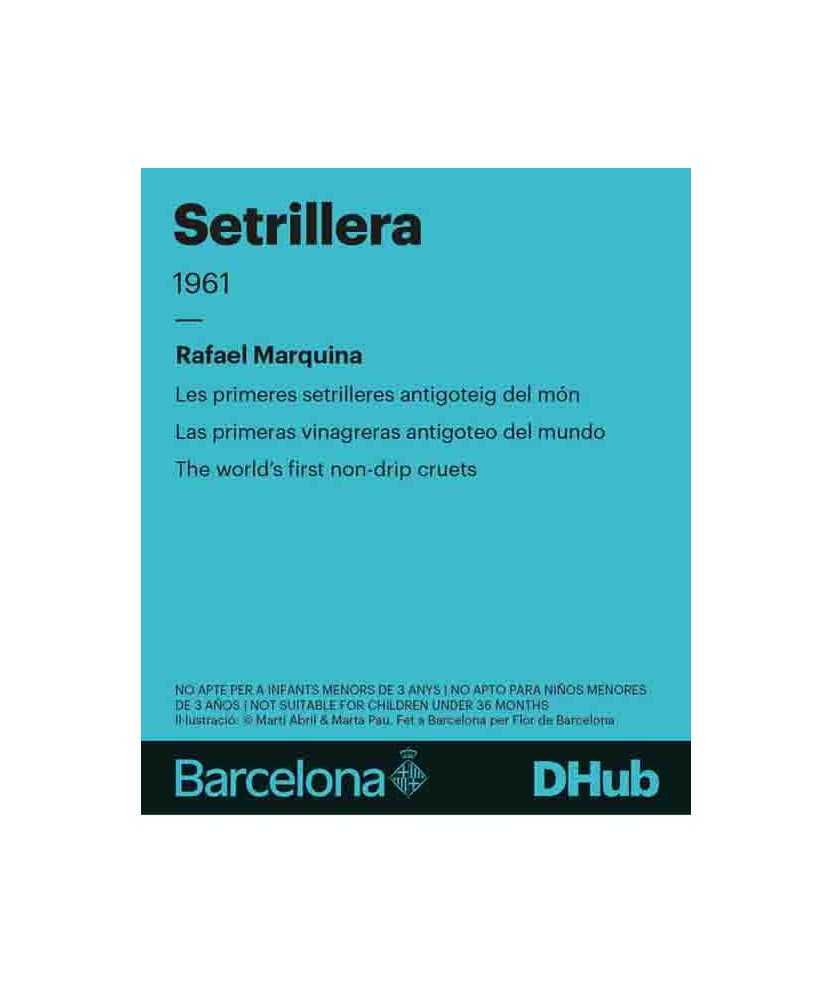 Imant que il·lustra la icònica setrillera de Rafael Marquina, un clàssic del disseny català. De les primeres setrilleres antigoteig del món. Ideal com a petit regal per als amants del disseny i la cultura gastronòmica. Il·lustració de Martí Abril i Marta Pau. Fet a Barcelona. Mides: 7x10cm.