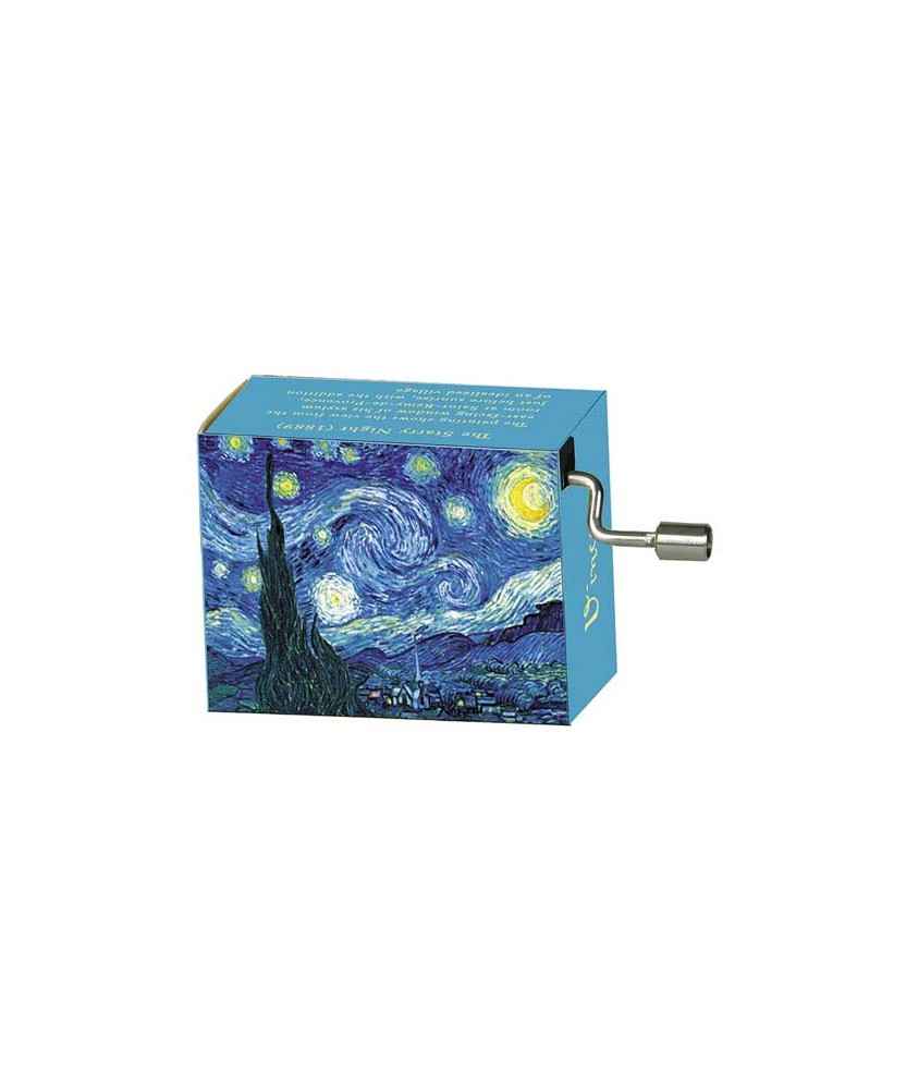 Afegeix música al teu dia amb aquesta petita capsa de música. Gira la maneta per fer sonar la melodia tantes vegades com vulguis! La capsa mostra la pintura La nit estrellada (1889) de Vincent van Gogh (1853-1890). Melodia: Vals de les flors de Txaikovski. Mides: 8,5x4,5x3 cm.