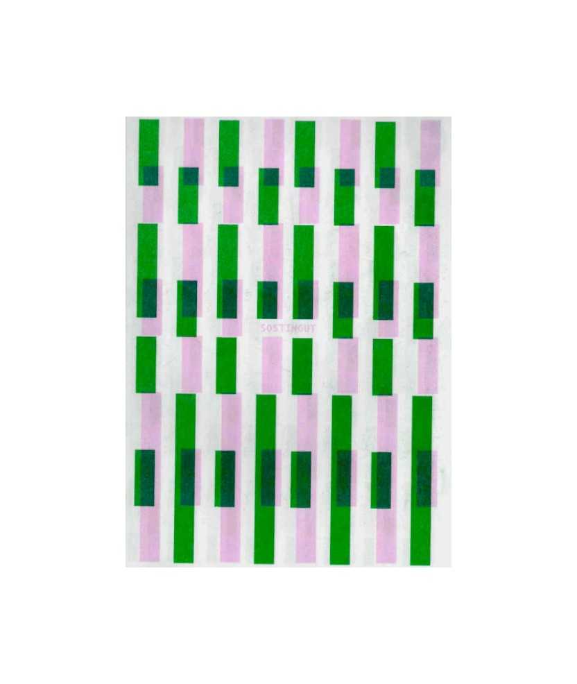 Sostingut és una faula de formes descompostes pel desplaçament de punts aleatoris dins d'una graella, que generen estructures que trenquen la jerarquia original per crear tensions visuals. En aquest procés, l'ordre esdevé inestable i es transforma en noves relacions que creen un diàleg abstracte. Tot plegat és una mena d'actualització dels discursos històrics, del constructivisme a l'op art, passats pel sedàs d'una pràctica contemporània de gràfica experimental.