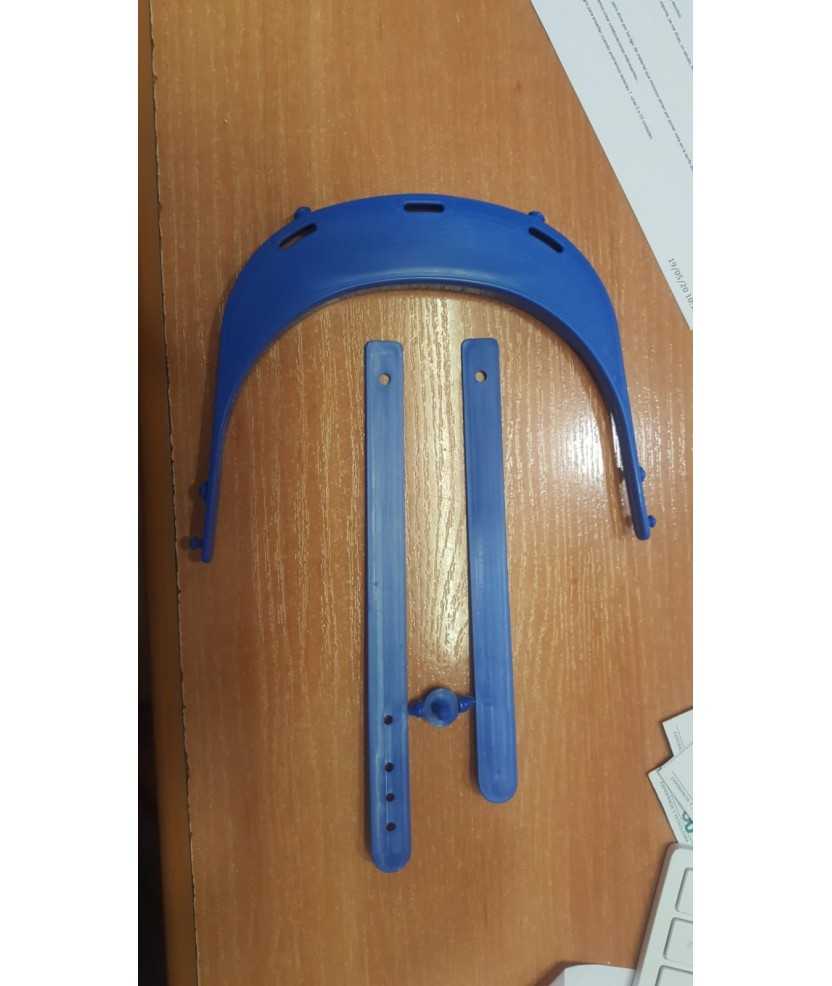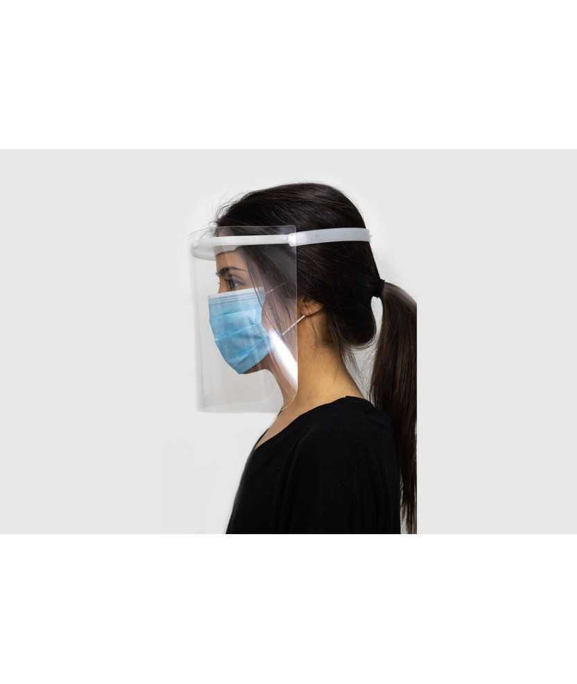 Pantalla protectora facial autoritzada UNE-EN 166: 2002. Pantalles fabricades en Resina PET, tenen un camp de visió complet tant frontal com lateral, no irriten la pell. La corretja i el suport estan fabricats en Polipropilè copolímer PB180 i EVA P18010, disponible en diversos colors. Es venen desmuntades.