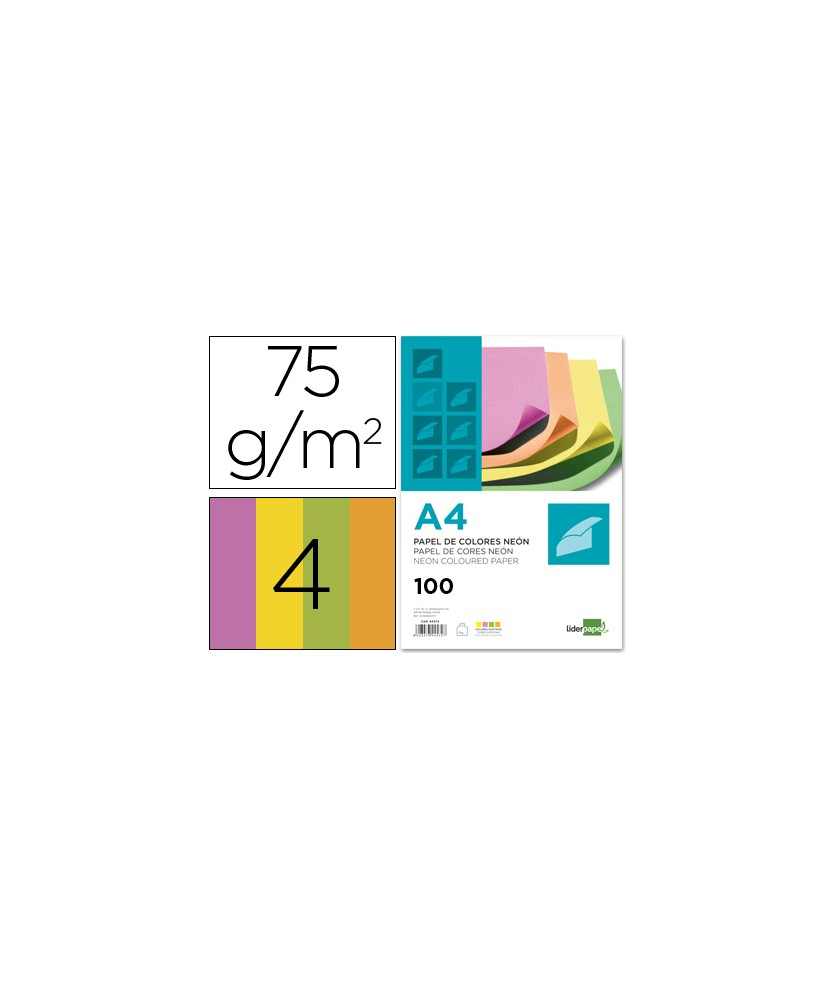 Papel color liderpapel din a4 75 gr neon 4 colores surtidos paquete de 100 hojas