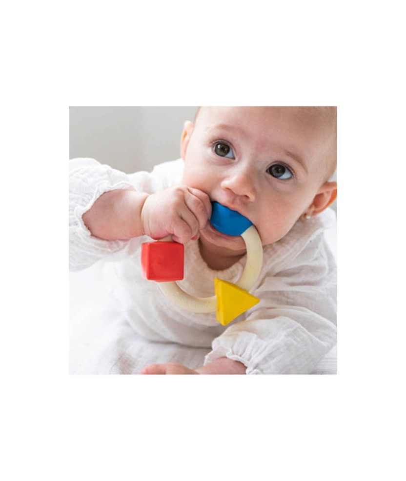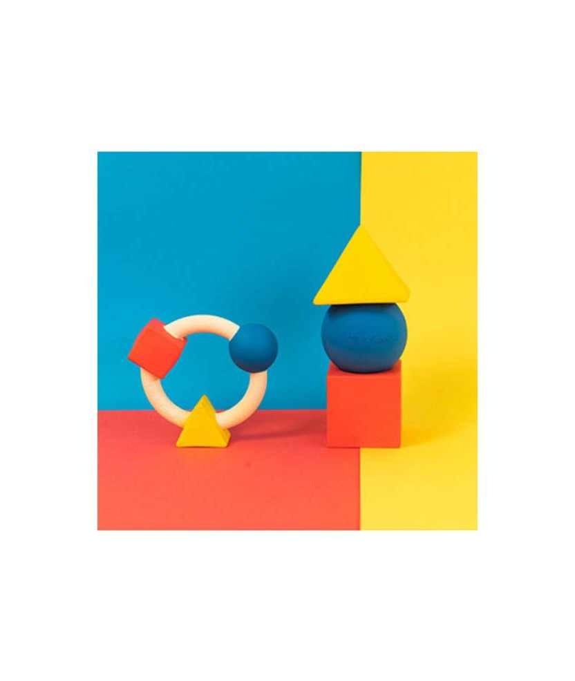 El mossegador Bauhaus és fàcil de subjectar i mossegar per als nadons. Dissenyat amb figures geomètriques perquè comencen a aprendre les formes i colors més bàsics mentre calmen alleugen el dolor de les genives durant la dentició. Els nens desenvoluparan la motricitat fina mentre en potencien la imaginació i la creativitat. Són fàcils de penjar i de portar a tot arreu.