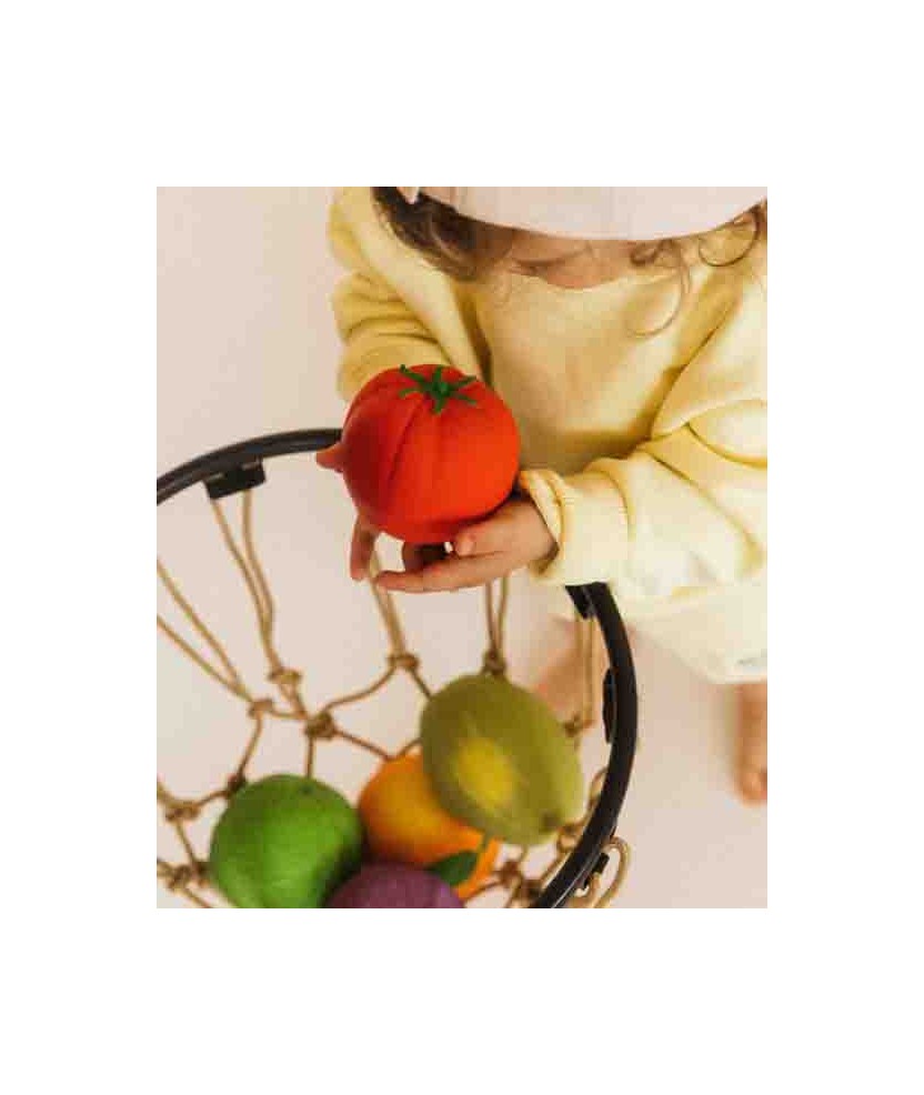 Pilota sensorial per a nadons amb forma de tomàquet, ideal per estimular el joc i el desenvolupament des de ben petits. Fabricada a mà amb cautxú 100% natural, sense forats i apta també per al bany. La seva textura i forma irregular afavoreixen l'adherència, el rebot suau i l'estimulació sensorial. Ecològica, segura i lliure de tòxics: també funciona com a mossegador per calmar les genives.