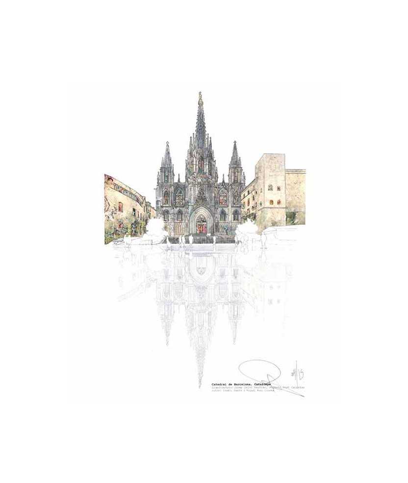 Làmina artística de l'arquitecte xilè Pavel Cueto G, realitzada amb tècnica mixta digital, fotografia i collage sobre paper de dibuix Gurro Basik. Representa amb força i elegància la Catedral de Barcelona, joia del gòtic i símbol espiritual de la ciutat. Ideal per a amants de l'art i de la història.