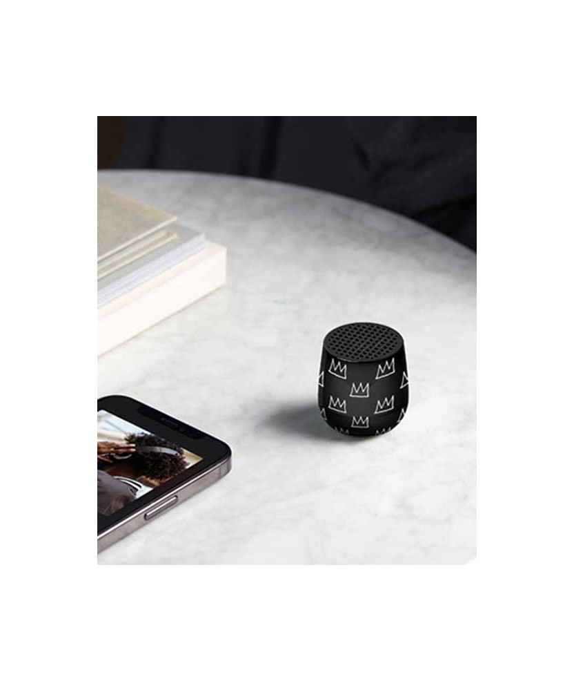 Aquest mini altaveu Bluetooth portàtil de 3 W cap al palmell de la mà i produeix una qualitat de so impressionant. Amb la seva mida compacte, disseny elegant i rendiment excepcional, Mino+ és simplement el company d'àudio perfecte per portar-lo a tot arreu. En aquesta ocasió, Lexon ha reinventat els seus articles més icònics per presentar algunes de les principals obres de Jean-Michel Basquiat. Amb diversos dissenys disponibles, aquest s'inspira a Crown. Mides: Ø 3,7x3,7 cm.