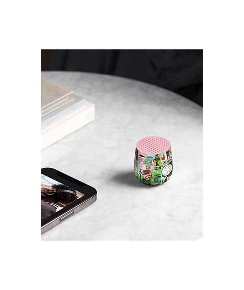 Aquest mini altaveu Bluetooth portàtil de 3 W cap al palmell de la mà i produeix una qualitat de so impressionant. Amb la seva mida compacte, disseny elegant i rendiment excepcional, Mino+ és simplement el company d'àudio perfecte per portar-lo a tot arreu. En aquesta ocasió, Lexon ha reinventat els seus articles més icònics per presentar algunes de les principals obres de Jean-Michel Basquiat. Amb diversos dissenys disponibles, aquest s'inspira a In Italian. Mides: Ø 3,7x3,7 cm.
