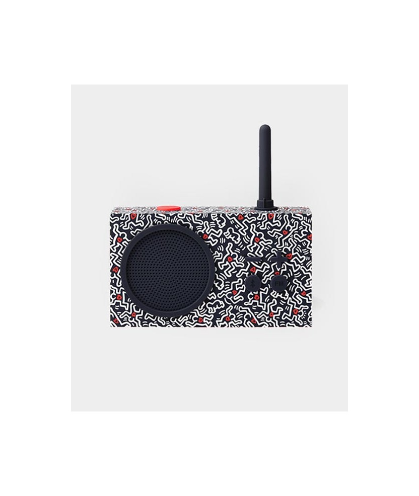 La radio Tykho 3 de Lexon destaca pel seu disseny icònic i forma retro. Creada fa més de 20 anys, Tykho és el primer objecte de disseny que apareix a la portada de la revista Time. Resistent a l'aigua. Inclou un cable Micro-USB per carregar-la. En aquesta ocasió, Lexon ha reinventat els seus articles més icònics per presentar algunes de les principals obres de Keith Haring. Amb diversos dissenys disponibles, aquest s'inspira a Love. Mides: 14x4x8 cm.