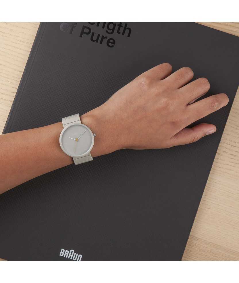 L'ús innovador dels materials és un principi fonamental del disseny Braun. El BN0171 incorpora la caixa completament ceràmica amb una corretja també ceràmica. Moviment de quars. Vidre mineral i caixa ceràmica resistents a ratllades. 3 ATM. Mida: 38 mm ø.