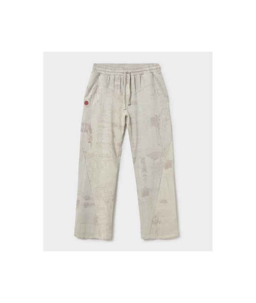 Pantalons de xandall de tall recte amb patró de costures corbes i tall en espiral a les cames. Presenten un estampat integral d'esbossos de l'arquitectura modernista de Barcelona, amb butxaques laterals i cintura elàstica amb cordons. Disponible en talles S-XL. Dissenyat i fet a Barcelona per Ugo Boulard dins del programa Barcelona Fashion Forward 2025.