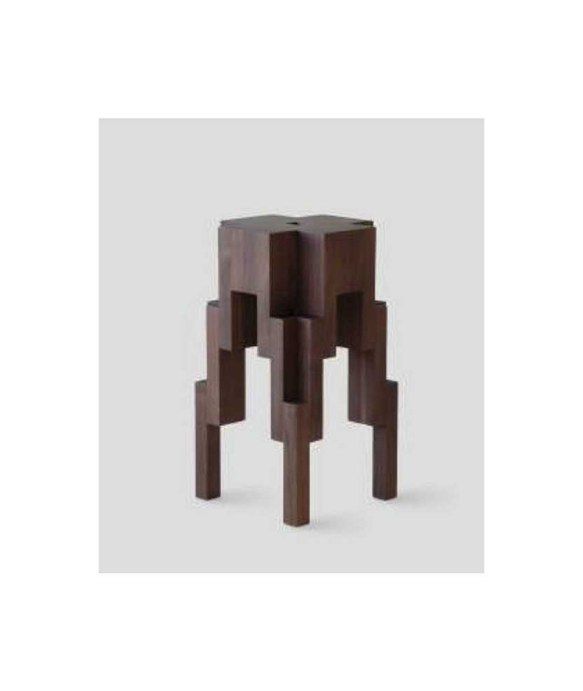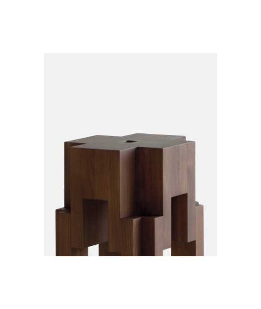 Tamboret de fusta de noguera, de geometria sòlida i robusta. Una vegada vaig estar cobert per un gran oceà de magma, que va fondre les meves corbes en grans columnes basàltiques. Pertany a la col·lecció LUNAR OBJECT, una sèrie limitada d'artefactes-escultures funcionals realitzada en col·laboració amb artesans locals, i combina la tecnologia amb tècniques de producció tradicionals que s'estan perdent als nostres dies. Mides: 33x33x65 cm.