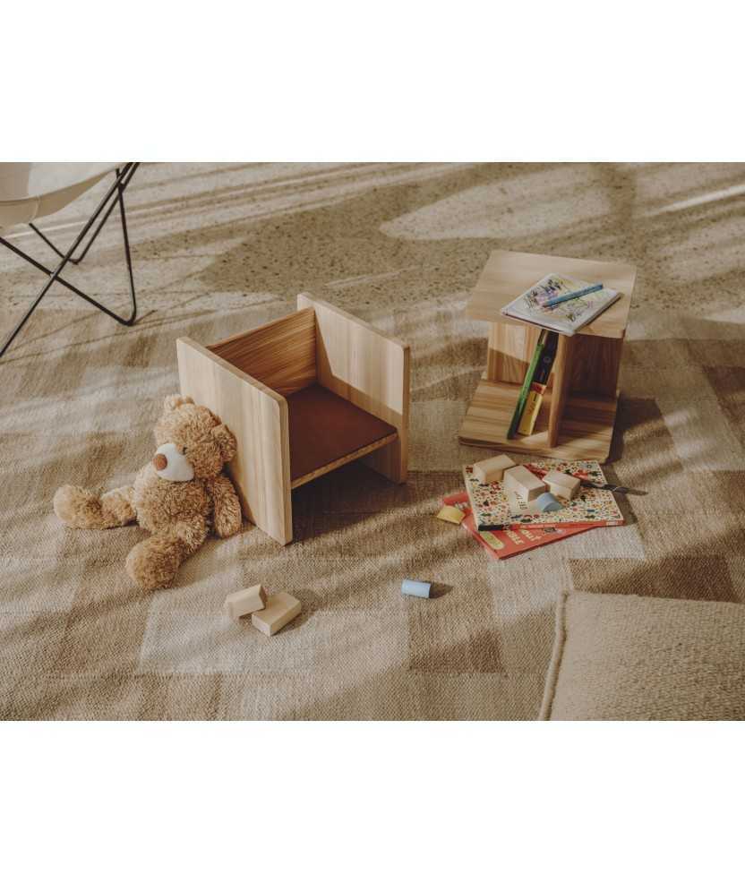 El tamboret infantil Delta (Premi Delta 1964) és un dels mobles més emblemàtics de Jordi Vilanova. L'autor va dissenyar diversos mobles infantils i va defensar la idea que fossin simples i versàtils. Vestit amb cuir de la millor qualitat. Malgrat ser un element per seure, les seves formes elementals permeten assumir diversos usos, dins i fora del context infantil. De fusta de freixe. Pell no inclosa. Mides: 32x32x32 cm.