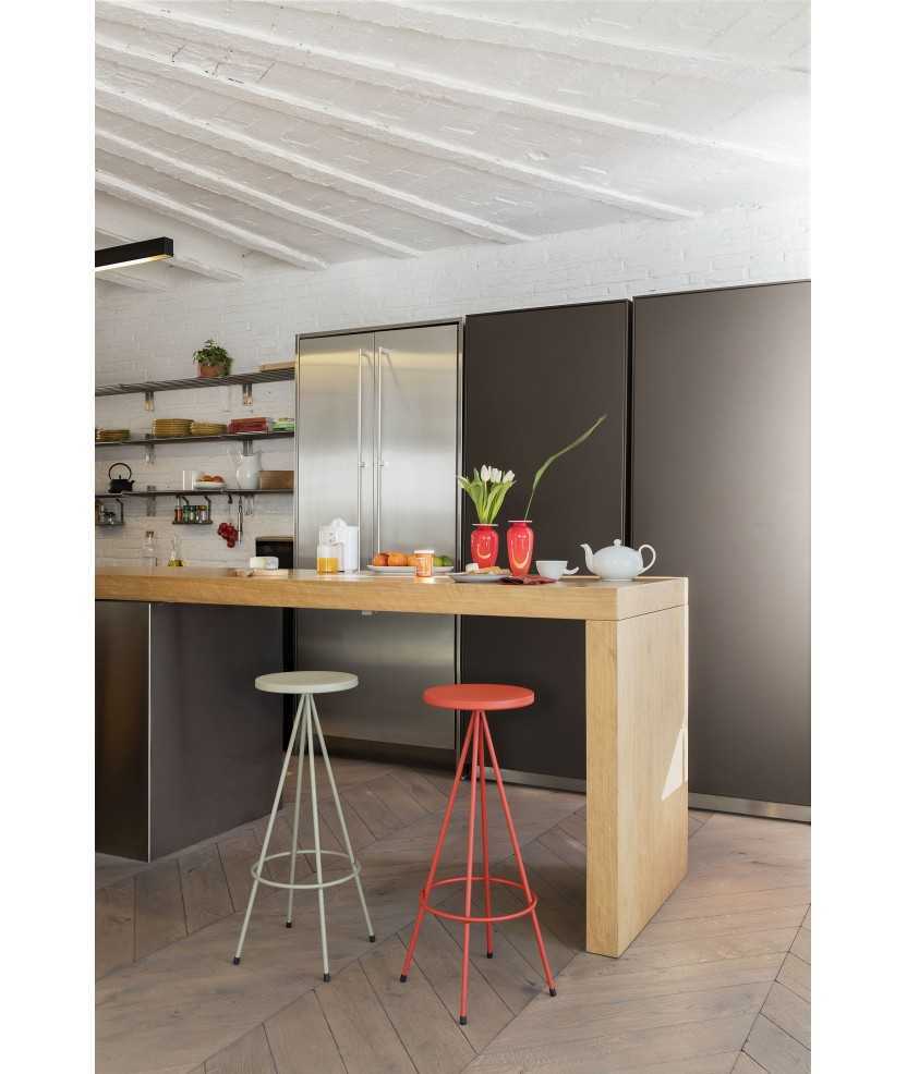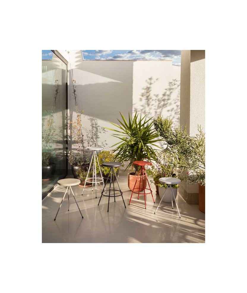 Nuta és una col·lecció de tamborets que destaquen per la seva forma essencial, per la lleugeresa i perquè s'adapten a diferents dissenys d'interiors. La seva lleugeresa formal no resta gens a l'estabilitat, i el tamboret suporta perfectament un ús intensiu. Amb estructura d'acer i pintura texturada epòxid amb tractament de cataforesis per a ús exterior. Ha rebut diversos reconeixements de disseny com la Selecció Premi Delta ADIFAD el 1990. Mides: 45x28x41 cm.