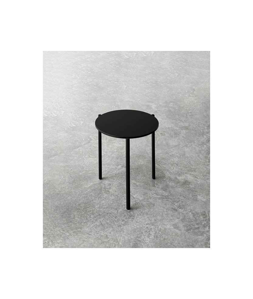 La taula Pausa combina elegància i funcionalitat amb un disseny de tres potes que garanteix estabilitat. Aquesta versió és per a interior, amb acabats resistents i moderns. La seva alçada ofereix una gran comoditat per a ús diari. Acabat amb tapa laminada negra i potes negres. Dissenyada per Jon Gasca el 2022. Mides: 40x50 cm.