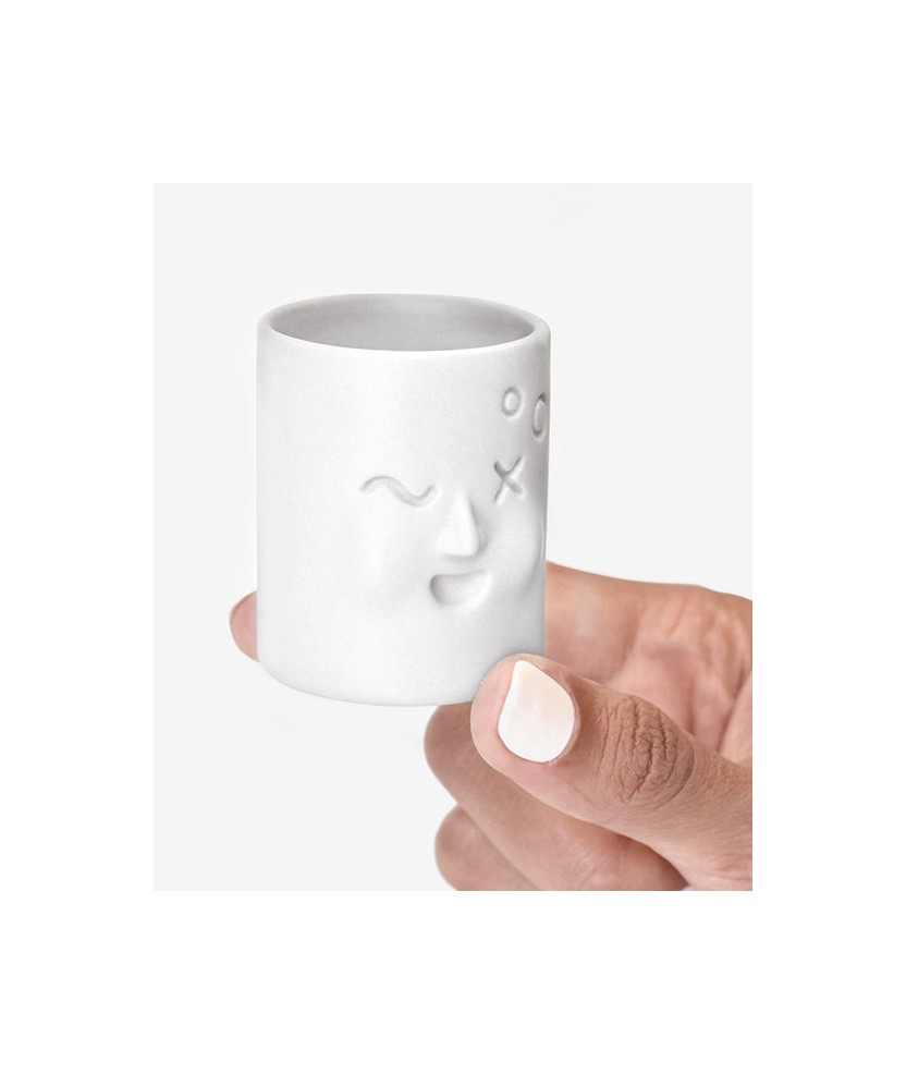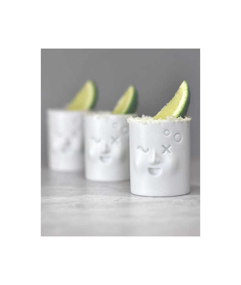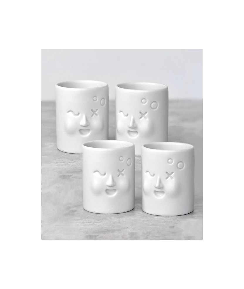 Joc de 4 gots de porcellana per a xarrups amb el disseny d'un rostre que expressa emocions humanes. Forma part de la col·lecció Moody, un recull d'objectes de porcellana inspirats en el Tsukumogami, mot de la mitologia japonesa que descriu les ànimes que habiten en objectes antics. Son aptes per a rentavaixelles i microones. Mides: 4x5 cm. Capacitat: 35ml.
