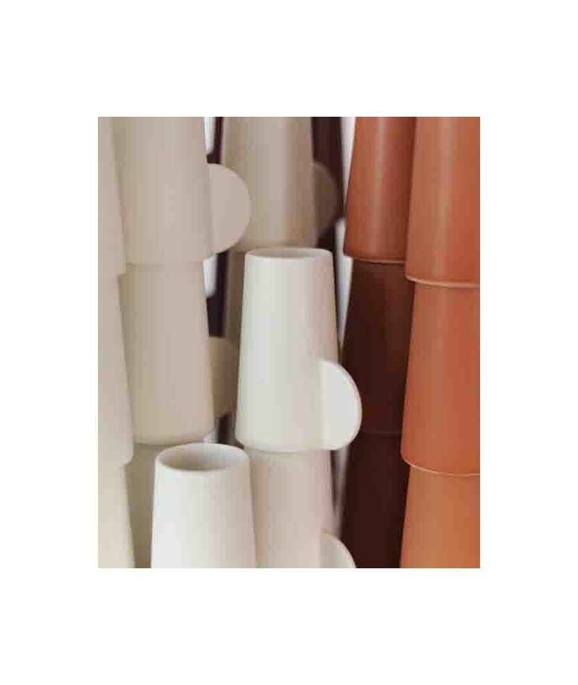 Cona és una col·lecció de tasses que combina disseny racional i sensibilitat artesanal. Dissenyades i produïdes a Barcelona, representen un compromís amb la producció local, la sostenibilitat i el suport als artesans. Amb una capacitat de 50 ml, són perfectes per gaudir d'un cafè sol o tallat. Fabricades en gres esmaltat, ofereixen resistència, durabilitat i un tacte agradable. Són aptes per al rentaplats i es presenten en tres tonalitats: beix, teula i xocolata. Mides:8x6,5x4,6 cm