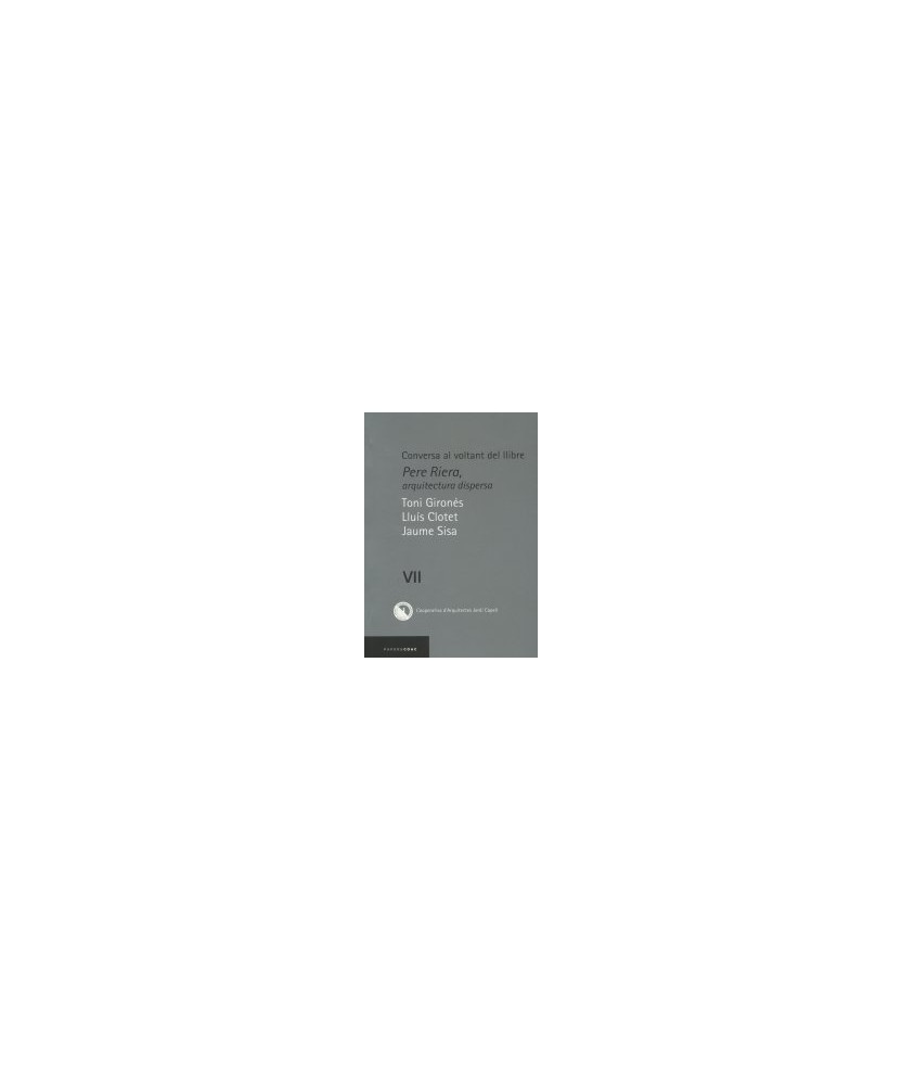 Libro que recoge la presentación del libro Pere Riera, arquitectura dispersa realizada en la sede del Col·legi d'Arquotectes de Catalunya, en Barcelona. Incluye la participación de Toni Gironés, Lluís Clotet, Jaume Sisa i del mismo Pere Riera. 56 p., 15x11 cm, rústica