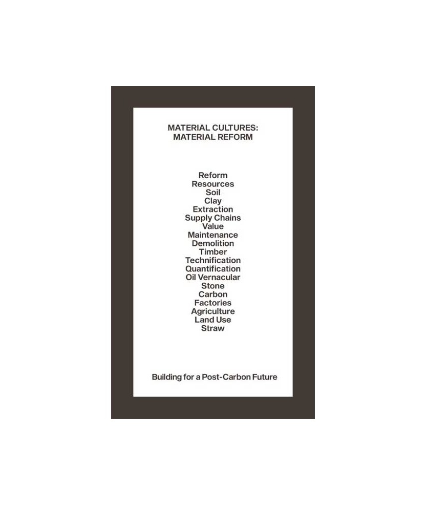 The first book by the design and research practice Material Cultures, assembles a series of short essays and conversations exploring the cultures, systems, and infrastructures that shape the architectural industry and the destructive ecologies it fosters. The building practices dominating contemporary architecture are rooted in the exploitation of people and the degradation of our landscapes.