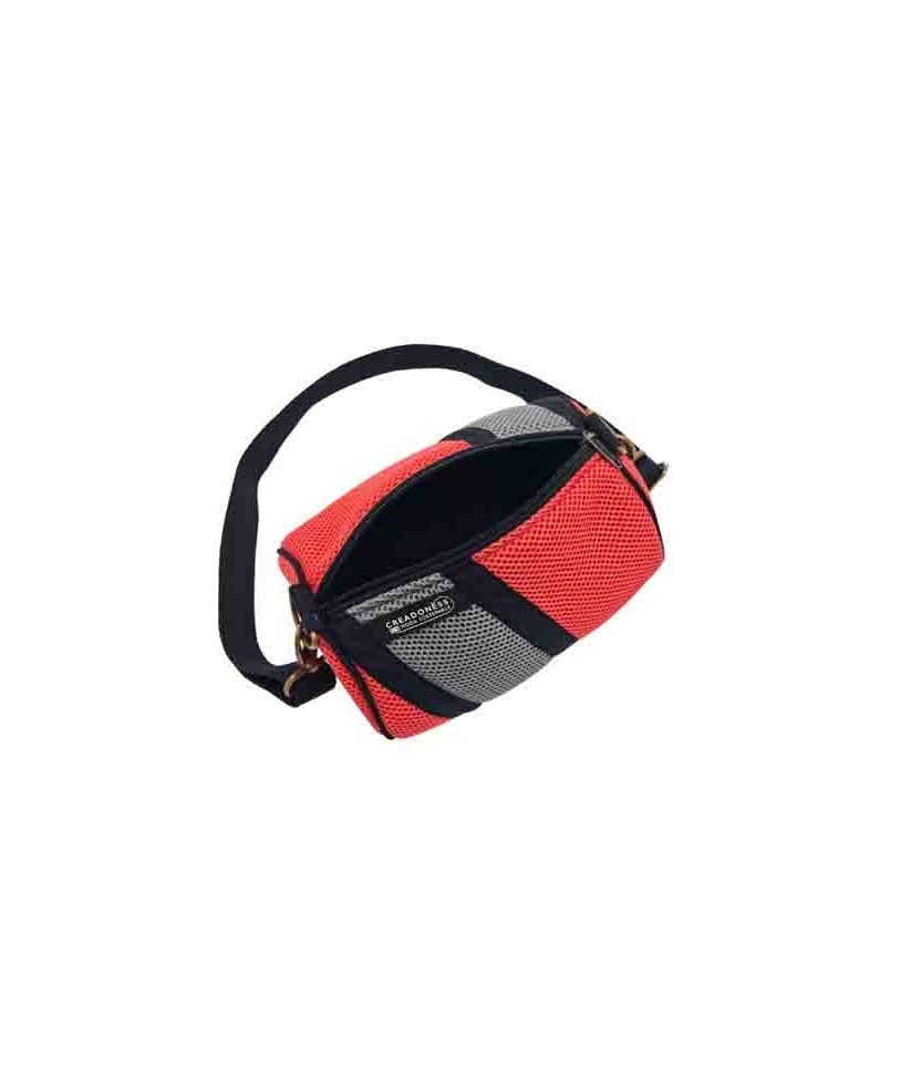 En Creadoness apuestan por la singularidad de cada pieza y de cada mujer que la elabora. Este mini bolso único está hecho a mano en Barcelona con tejido técnico 3D y forro vinílico impermeable reciclado, confeccionado por mujeres de su programa social. Medidas: 24x14 cm.