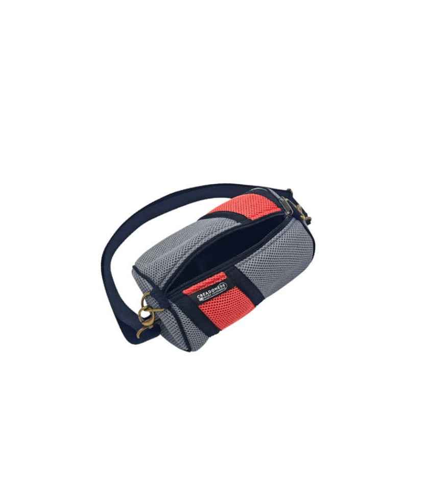 En Creadoness apuestan por la singularidad de cada pieza y de cada mujer que la elabora. Este mini bolso único está hecho a mano en Barcelona con tejido técnico 3D y forro vinílico impermeable reciclado, confeccionado por mujeres de su programa social. Medidas: 24x14 cm.