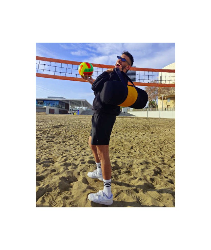 El bolso Cilindro de Creadoness es una pieza artesanal, única y hecha a mano en Barcelona con tejido técnico 3D. Es ligero, resistente y muy espacioso, ideal para el gimnasio o los viajes. Cuenta con dos asas de algodón, cremallera, bolsillo interior profundo y forro impermeable reciclado. Incluye un bolsillo frontal para la botella de agua. Une funcionalidad, seguridad y estilo Glam Sport.