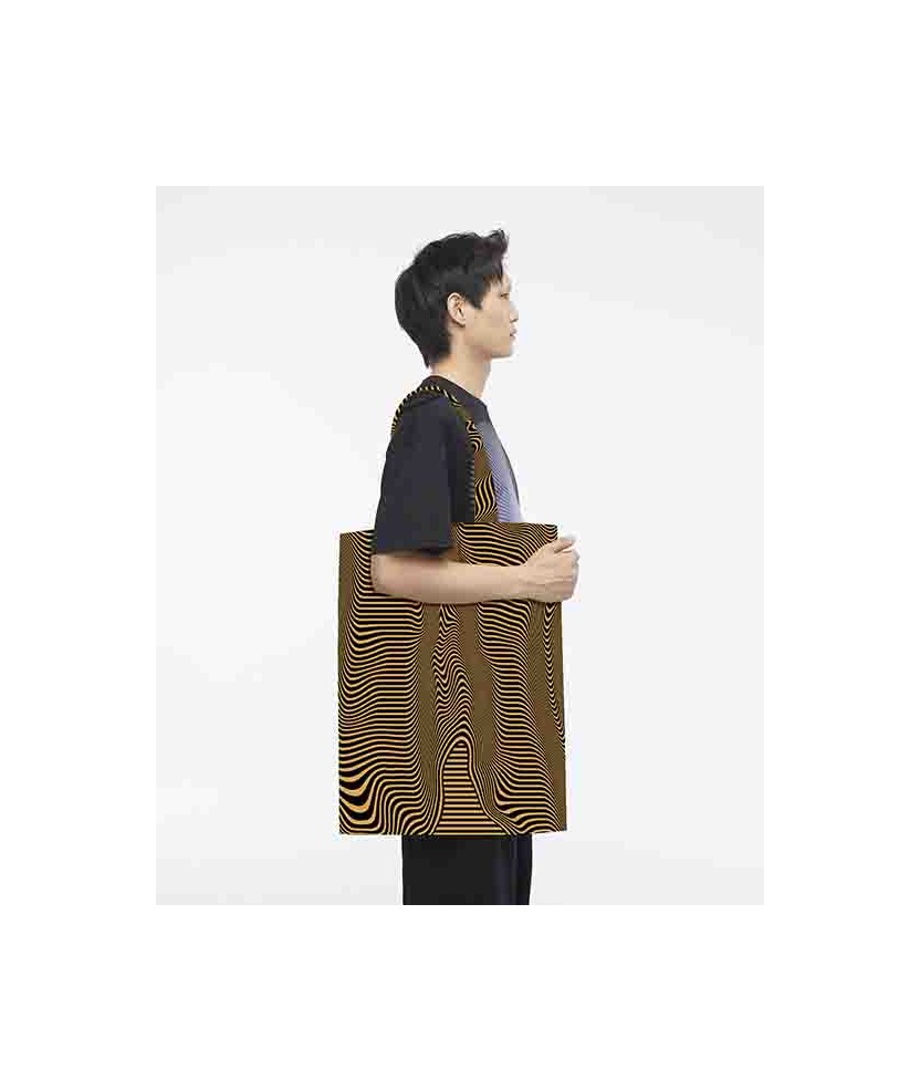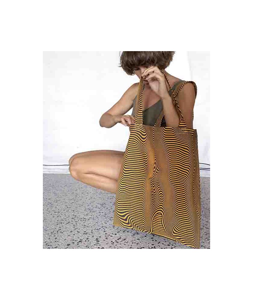 Bolsa de algodón sarga de 260 g/m² creada por Dunja Jankovic dentro de The Bag Project. Estampada con tintas de base de agua mediante serigrafía. Material resistente y adecuado para el uso diario. Se puede lavar hasta 30 °C. Medidas: cuerpo 55x45 cm, bolsillo interior 29x23 cm, asas 60x3 cm.