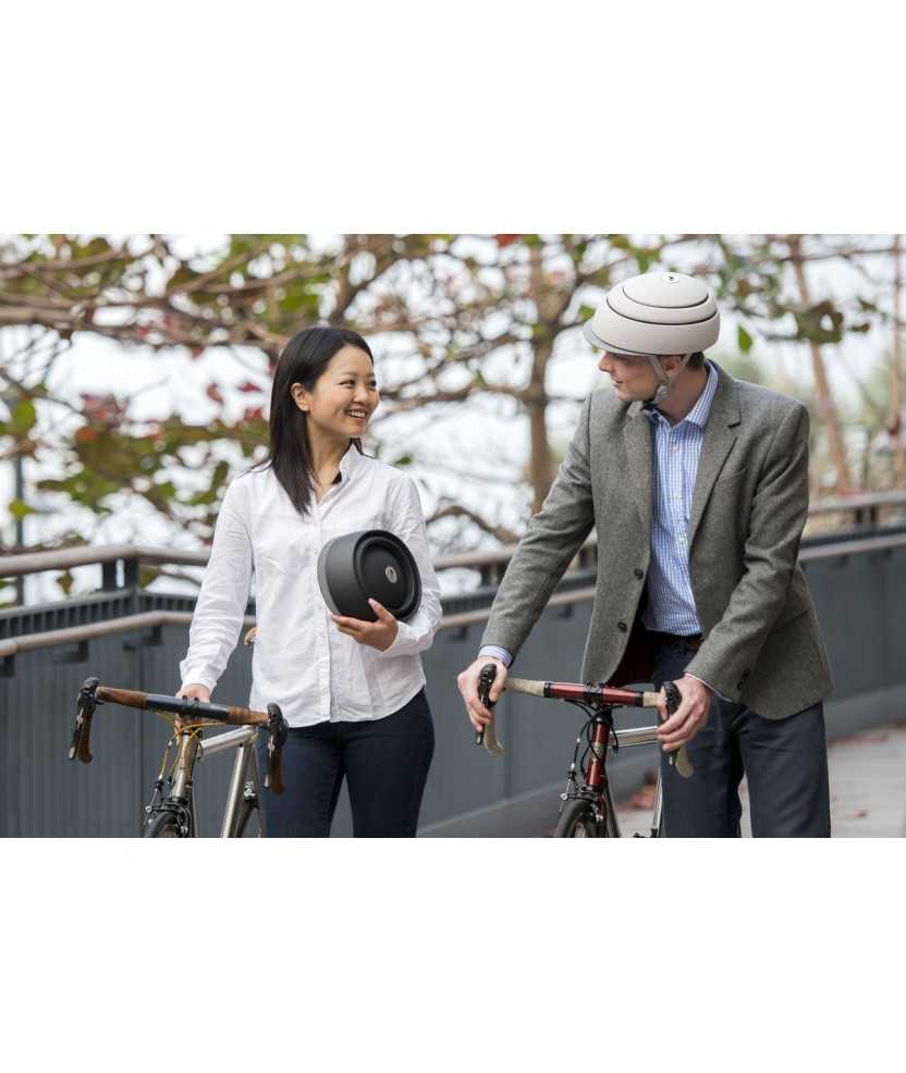 Se pliega fácilmente en menos de un segundo mediante un sistema que reduce a más de la mitad su volumen. Con un diseño minimalista pensado para aquellos que quieren seguridad sin renunciar a la elegancia. Disponible en negro y blanco. Incorpora chip NFC. Viseras intercambiables. Premio Delta de Oro ADI-FAD, 2016.