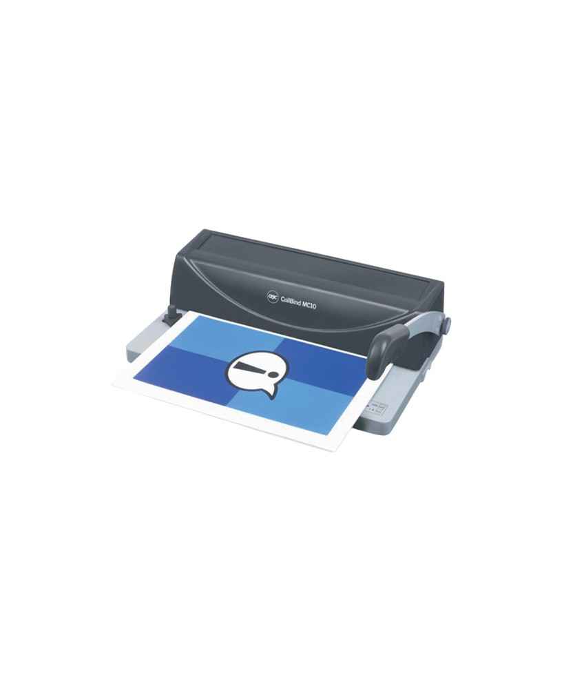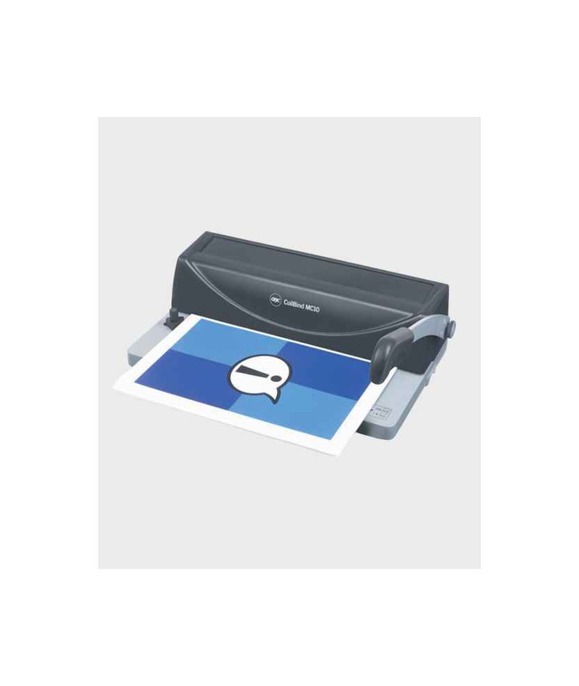 Encuadernadora manual de paso 5:1, compatible únicamente con espirales metálicos. La CoilBind MC10 perfora hasta 10 hojas de 80 g/m² y encuaderna hasta 450 hojas en formato A4 (vertical) o A3 (horizontal) con espiral tamaño A4. Incluye alicate para corte y doblado. Medidas: 284 x 159 x 428 mm. Ideal para uso en casa u oficina.
