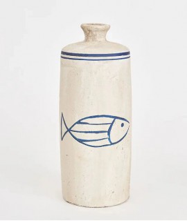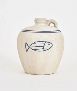 Jarra pequeña de terracota con un pez dibujado en azul que aporta un toque náutico vintage. Su forma compacta es ideal para servir bebidas o como elemento decorativo. La terracota le da un aspecto rústico y auténtico, mientras que el dibujo del pez evoca la serenidad del mar. Apta para lavavajillas y microondas. Medidas: 16,5x20 cm.