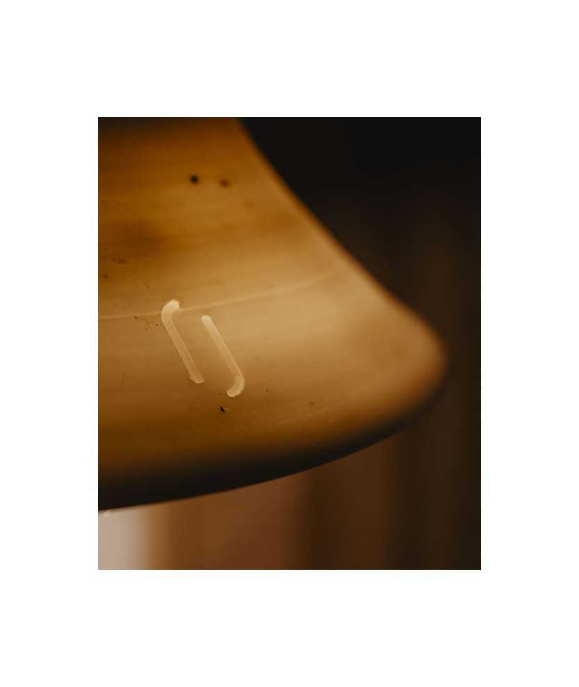 La LampadaFoc es una pieza pensada para aportar una luz cálida y crear un ambiente de calma y confort, evocando la sensación de estar sentado junto al fuego. Resulta adecuada para iluminar espacios de lectura, escritura o rincones del hogar con una luz suave. Cada pieza está hecha a mano, elaborada una a una, lo que resalta su carácter artesanal. Medidas: 40x12 cm.