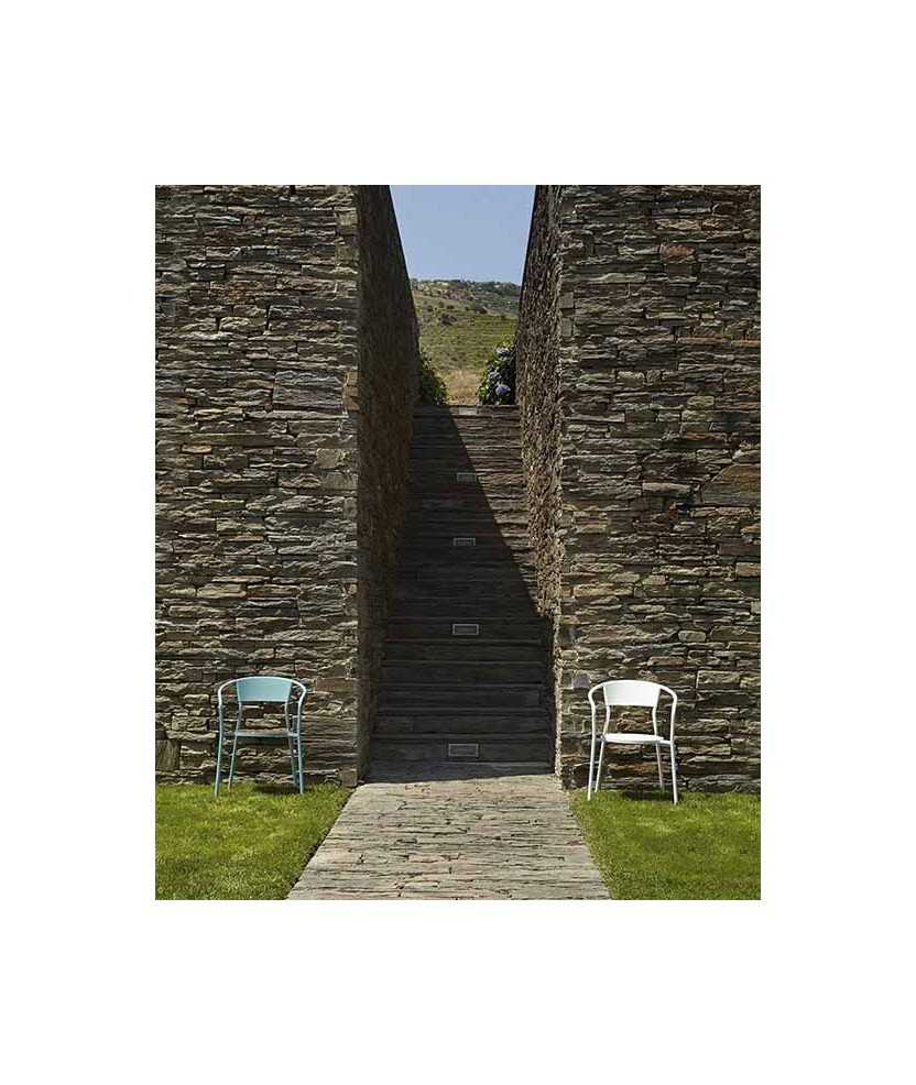 La silla Andaluza surge de la confluencia del círculo como reflejo de un concepto más mediterráneo, que recuerda la estela que deja el giro del baile flamenco. Esta idea, reflejada en el funcionamiento de la curvatura del tubo y la chapa de acero, busca un carácter envolvente y confortable para una silla urbana, especialmente apta para espacios exteriores. Estructura metálica. Disponible en otros colores. Peso: 7 kg. Medidas: 58x49x79 cm.