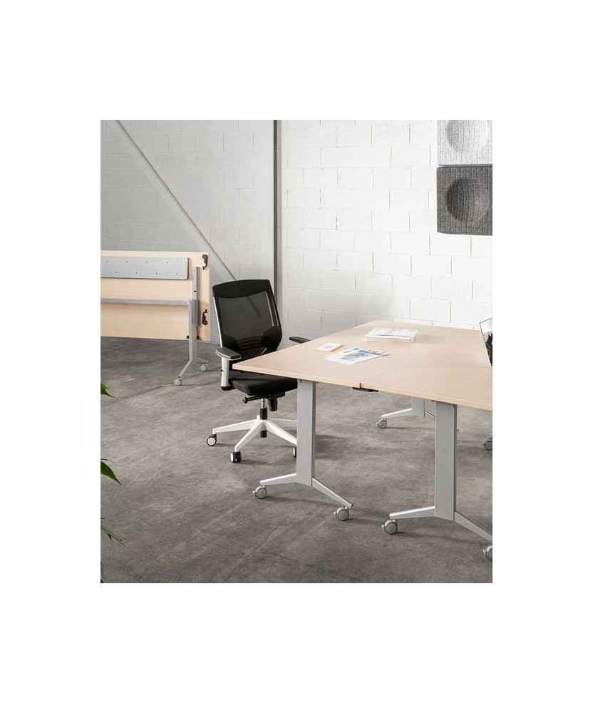 Silla operativa con asiento tapizado en tela ignífuga sobre espuma inyectada. Respaldo de polímero técnico con acabado en malla, mecanismo sincro-basculante y base robusta para un uso diario. Incluye regulación lumbar y brazos regulables de serie. Compatible con ruedas para parquet. Montaje sencillo y resistencia hasta 125 kg.