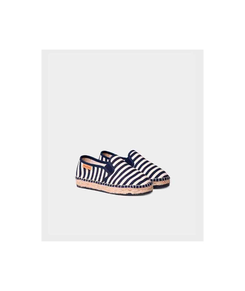 Las alpargatas Efes para niñ@s combinan estilo marinero y comodidad. Hechas en tela con suela antideslizante de 2 cm, son ideales para el uso diario. Su diseño vegano y artesanal, cosido a mano en España, asegura calidad y conciencia ecológica. Gracias a sus elásticos laterales, se adaptan fácilmente al pie. Disponibles en los siguientes colores: Azul marino, Amarillo, y Marino (rayas blancas y azules).