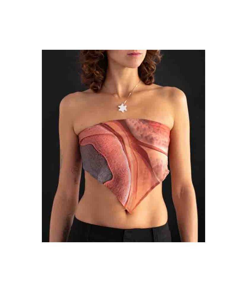 Los foulards estampados de Momamu fusionan arte, ciencia y artesanía contemporánea. Su diseño se inspira en estructuras moleculares y patrones orgánicos creados mediante modelado digital. El resultado es un estampado preciso, dinámico y visualmente envolvente, hecho con sublimación. Tejido ligero, suave y con transparencia, puede llevarse de múltiples formas. Una pieza única que aporta carácter e innovación a cualquier look. Medidas:98x148cm.