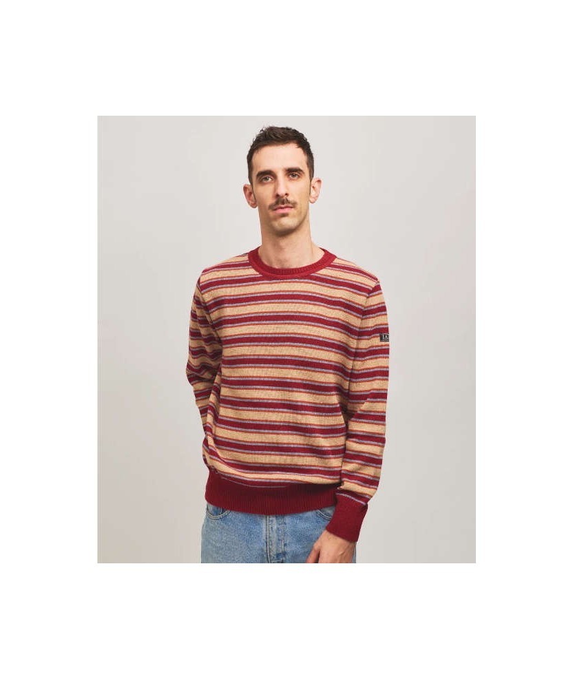 Jersey de punto de hombre o unisex en tonos rojos, ideal para aportar calidez y estilo a cualquier look. Su diseño versátil combina fácilmente con chaquetas y pantalones, convirtiéndolo en una prenda perfecta para cualquier ocasión. Confeccionado con hilo reciclado de excedentes textiles preconsumo, apuesta por una moda más responsable sin renunciar al confort. Materiales: 100% hilo reciclado (20% lana reciclada y 80% acrílico reciclado)