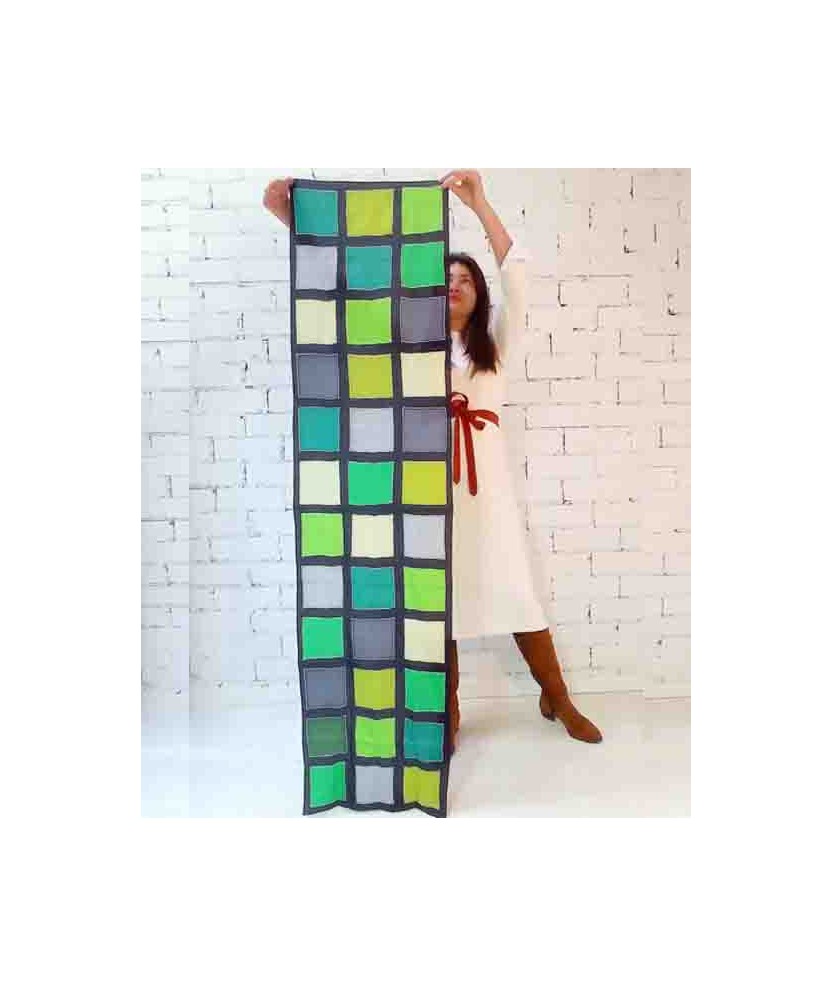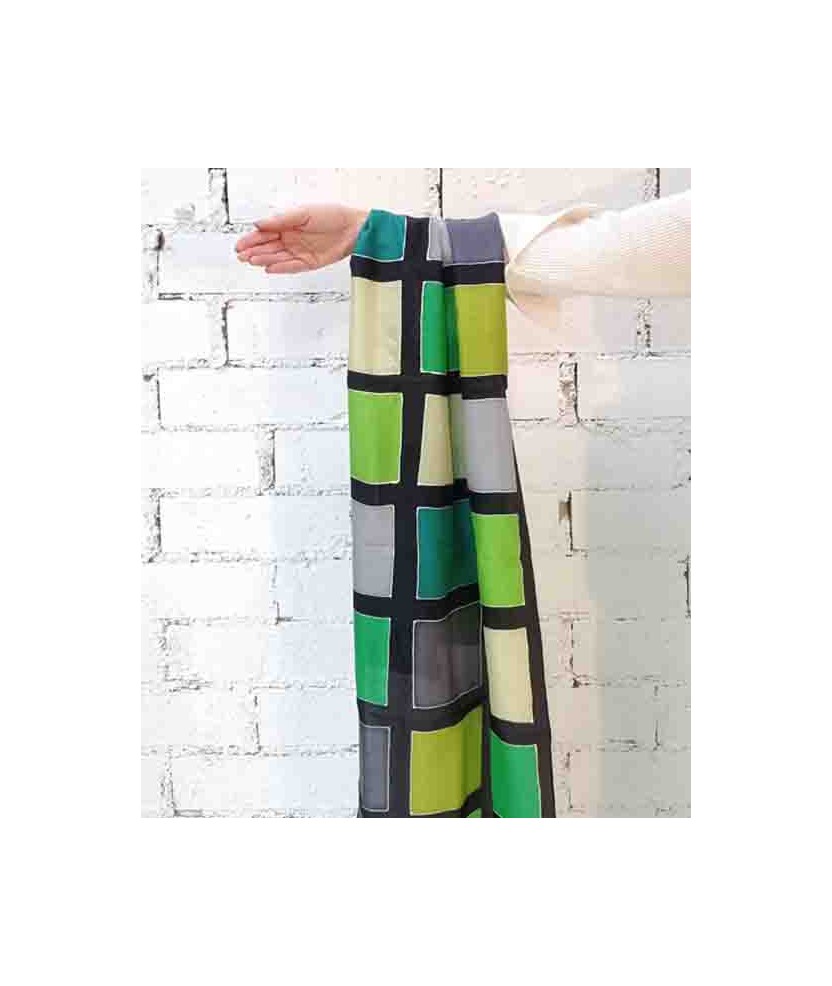 Pañuelo que pertenece a la colección 'Alta Artesanía', de seda 100% natural del tipo ponge 08 y de medidas 180x45cm pintado a mano con la técnica de la guta. Es un producto artesano de creación sostenible hecho con seda de primera calidad y con una vida útil muy larga. Consta del Distintivo de Artesanía otorgado por CCAM y la Generalitat de Cataluña. Son una serie limitada de 20 unidades con certificado de autenticidad de cada pieza y firma de la artista.