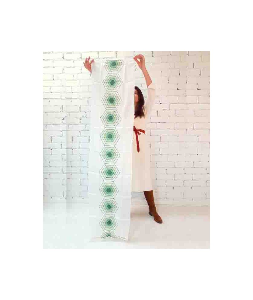 Pañuelo que pertenece a la colección 'Alta Artesanía', de seda 100% natural del tipo ponge 08 y de medidas 180x45cm pintado a mano con la técnica de la guta. Es un producto artesano de creación sostenible hecho con seda de primera calidad y con una vida útil muy larga. Consta del Distintivo de Artesanía otorgado por CCAM y la Generalitat de Cataluña. Son una serie limitada de 20 unidades con certificado de autenticidad de cada pieza y firma de la artista.