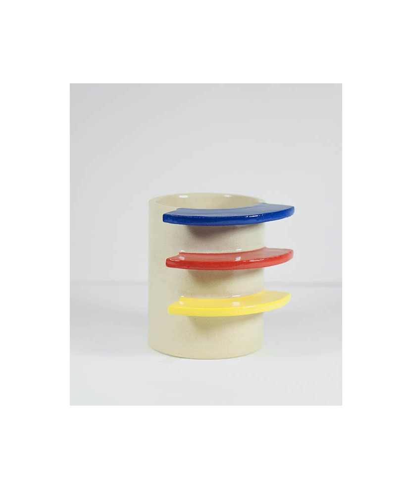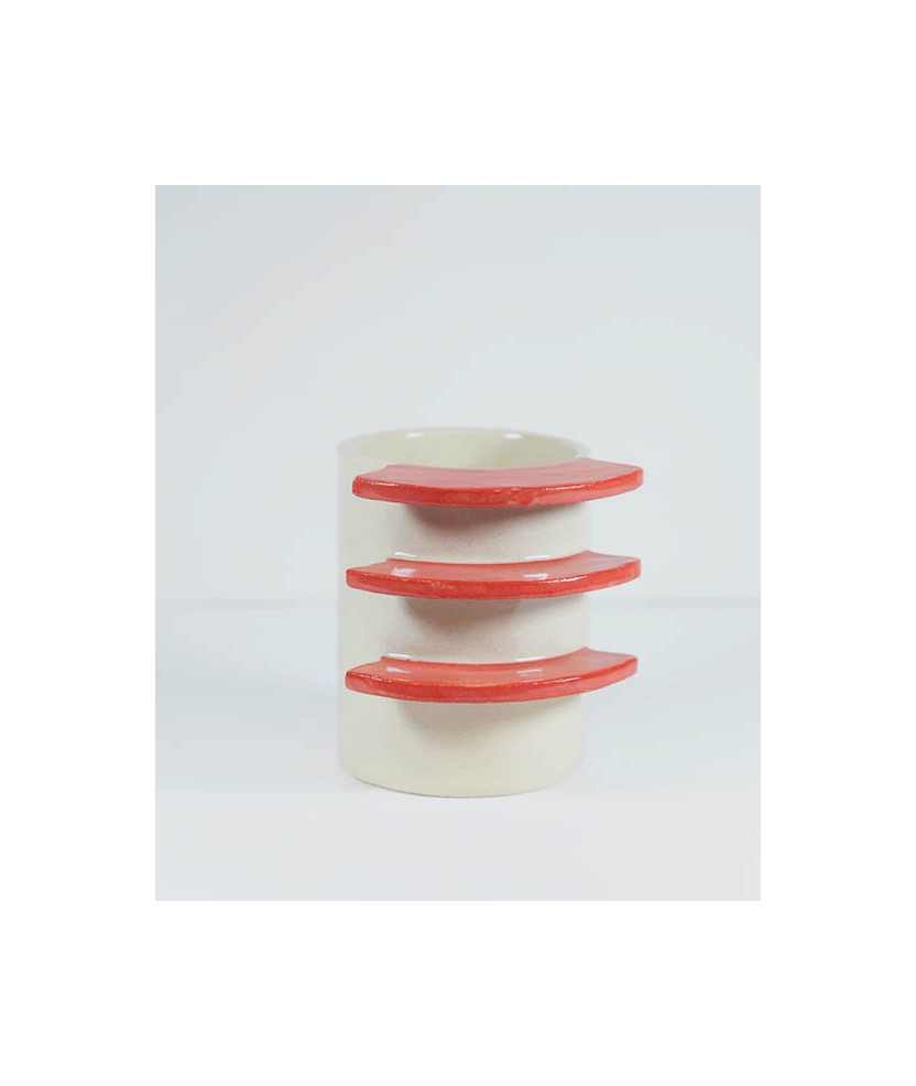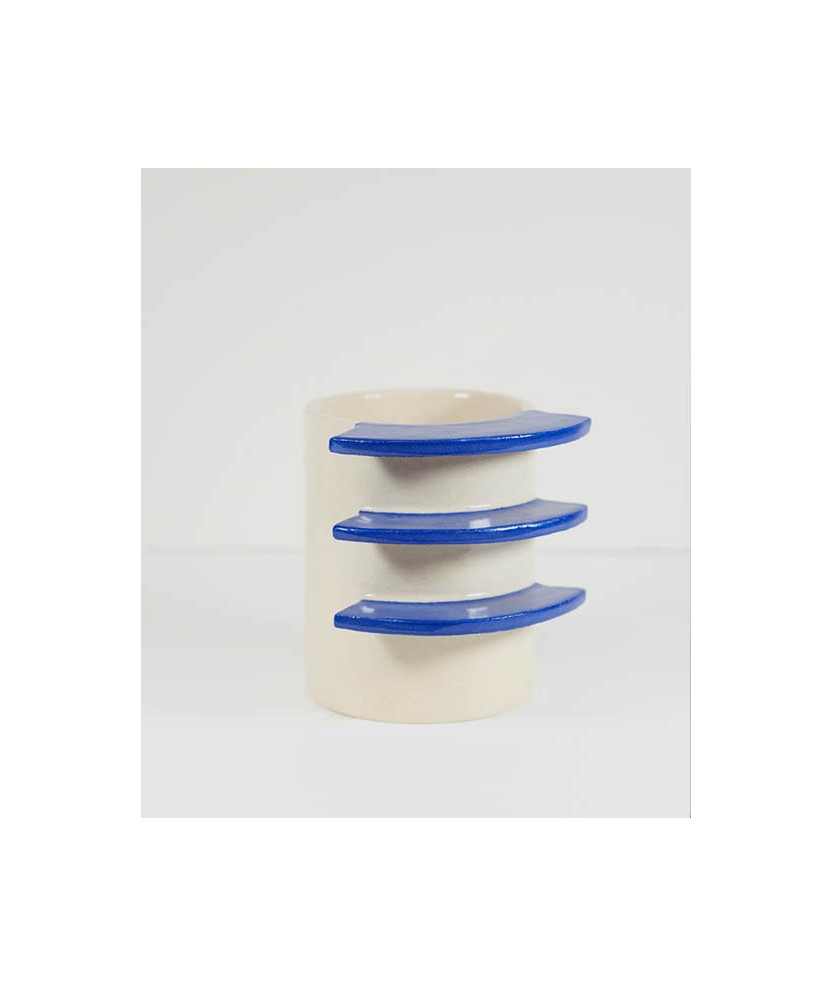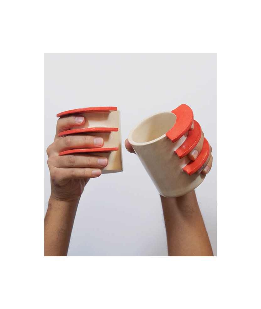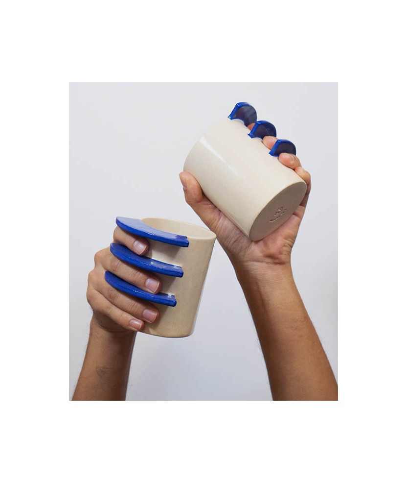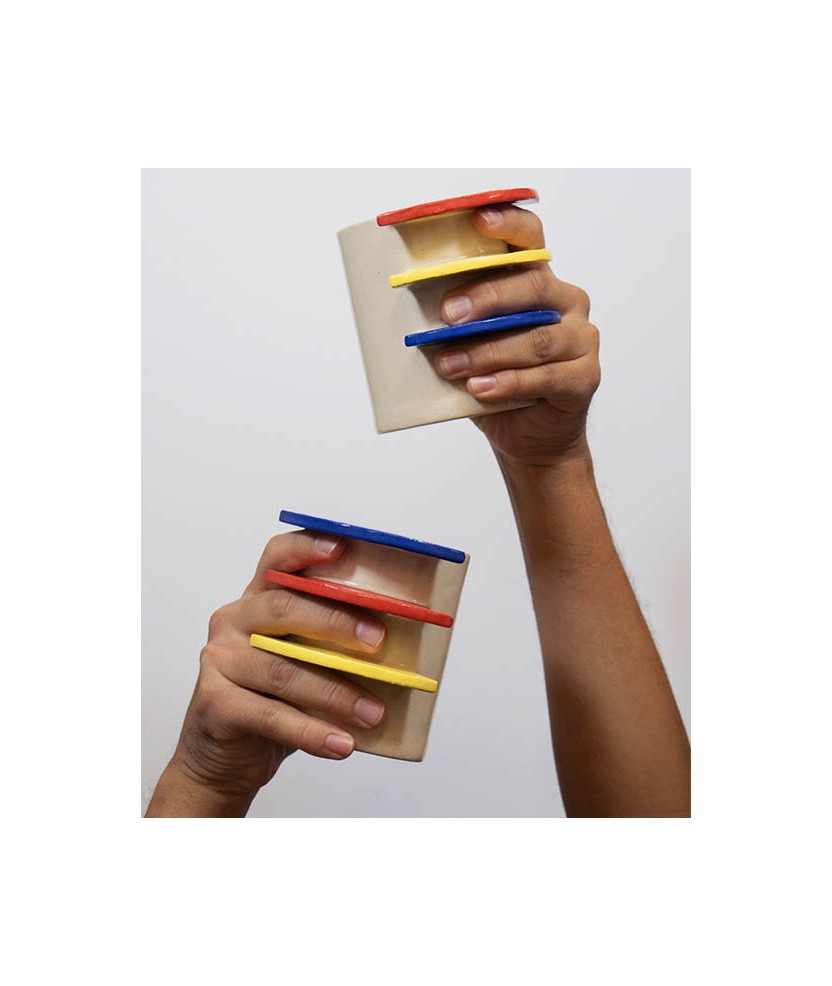 La WarmMug es una taza con un diseño de asa único y distintivo, formada por tres bloques horizontales que crean espacios abiertos para que puedas pasar los dedos al sostenerla. Esta estructura ofrece un agarre cómodo y diferente a las típicas asas de taza. Cada pieza está hecha a mano. Su nombre del inglés Warm, hace referencia a la búsqueda del calor a través de la taza, que transmite esa sensación reconfortante que se obtiene al sostener una taza caliente en días de mucho frío. Medidas aproximadas: 9,5x7,5 cm.
