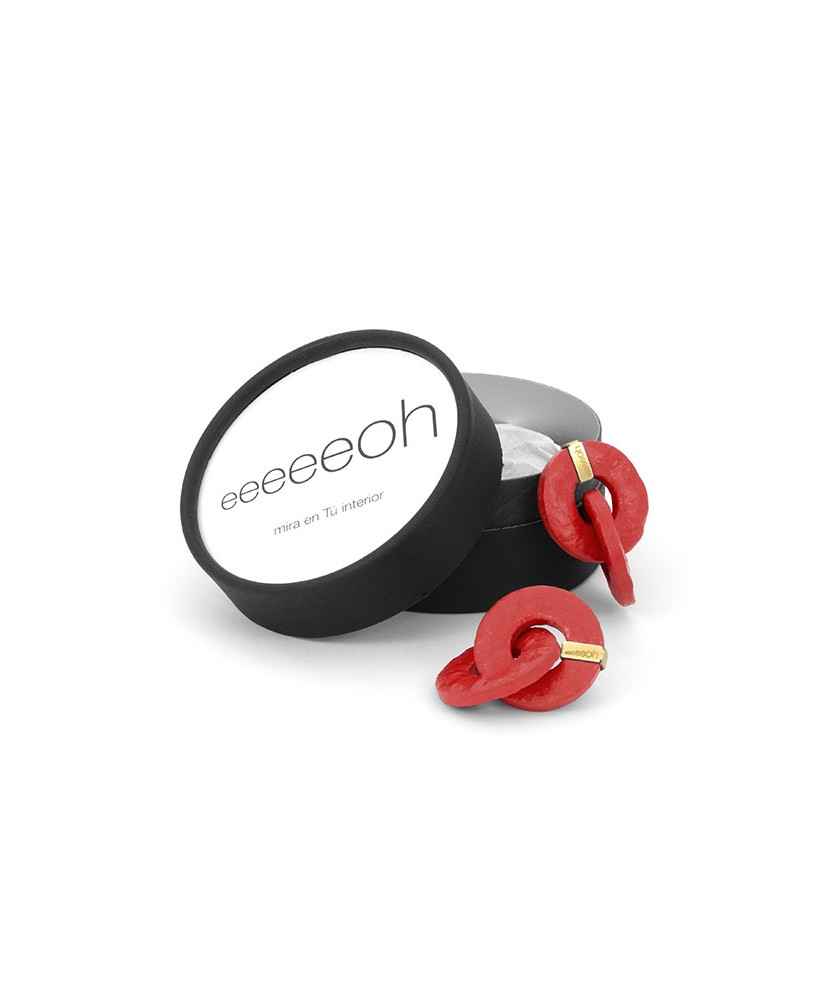 Modelo 11, pendiente de forma circular, tamaño pequeño y color rojo. Eeeeeoh es más que un pendiente: es un código de inclusión elaborado con material reciclado y ecológico, creado por personas con diversidad funcional en LaFact. Inspirado en la geometría de la Bauhaus y la filosofía Gestalt, esta pieza ligera de menos de 3 g conecta con la belleza interior y el equilibrio personal. Incorpora cierre hipoalergénico para garantizar comodidad y seguridad.