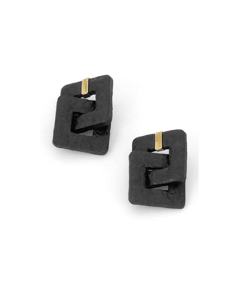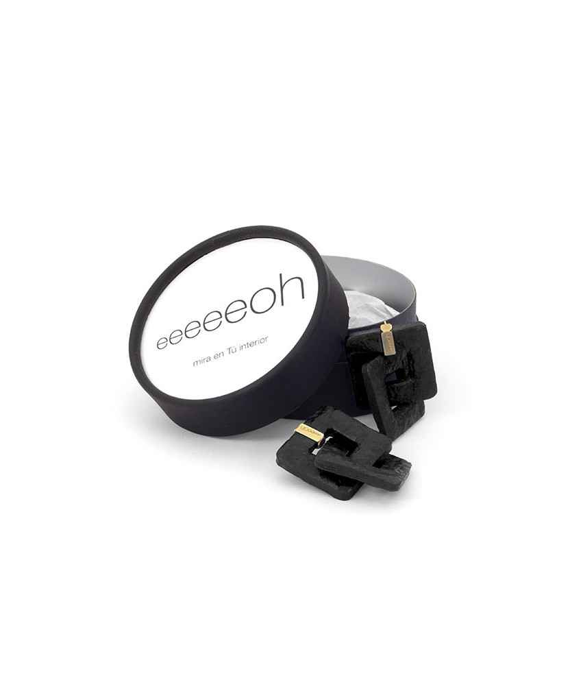 Modelo 22, pendiente de forma cuadrada, tamaño pequeño y color negro. Eeeeeoh es más que un pendiente: es un código de inclusión elaborado con material reciclado y ecológico, creado por personas con diversidad funcional en LaFact. Inspirado en la geometría esencial de la Bauhaus y la filosofía Gestalt, esta pieza muy ligera (menos de 3 g) conecta con la belleza interior y el equilibrio personal. Incluye cierre hipoalergénico para mejor adaptación y comodidad.