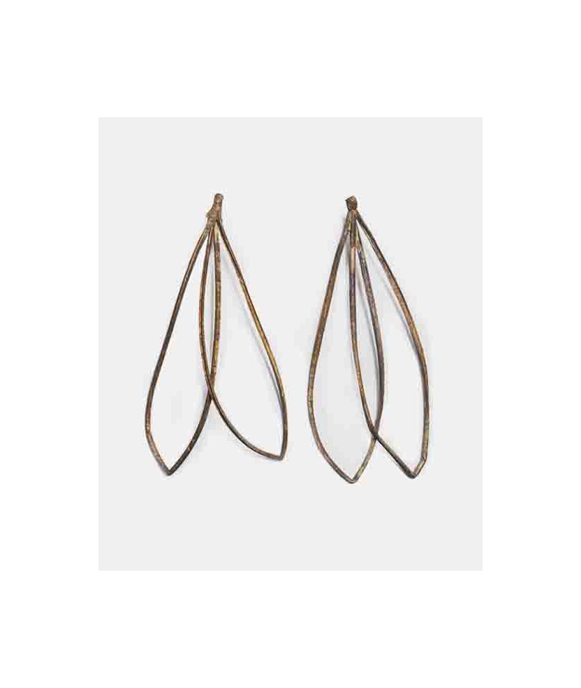 Un par de delicadas agujas de pino fundidas en bronce. Cada pendiente es único y su aspecto final puede variar ligeramente al de la foto, ya que se utilizan elementos de la naturaleza para crear un molde único y distinto de cada pieza. Medidas: 90 x 100 x 10 mm.