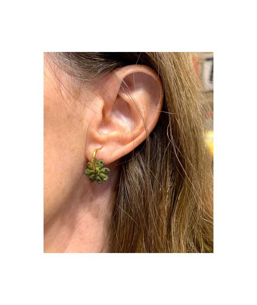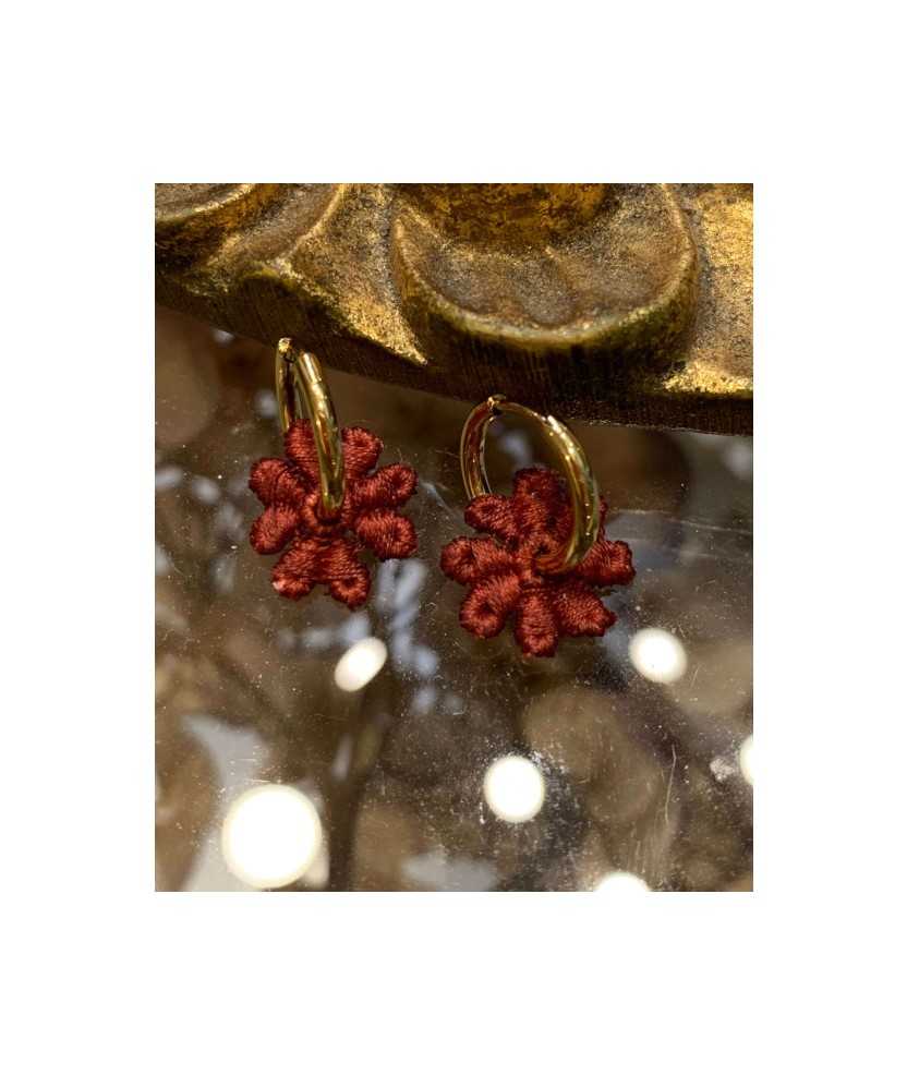 Los Pendientes Els Minis combinan elegancia y sostenibilidad en una joya ligera y versátil para el uso diario. El aro está realizado en acero inoxidable dorado y la flor en encaje de guipur antiguo, recuperado y teñido artesanalmente. Cada par es único gracias al proceso de upcycling, que transforma materiales del pasado en joyas contemporáneas con alma. Hechos a mano en Barcelona
