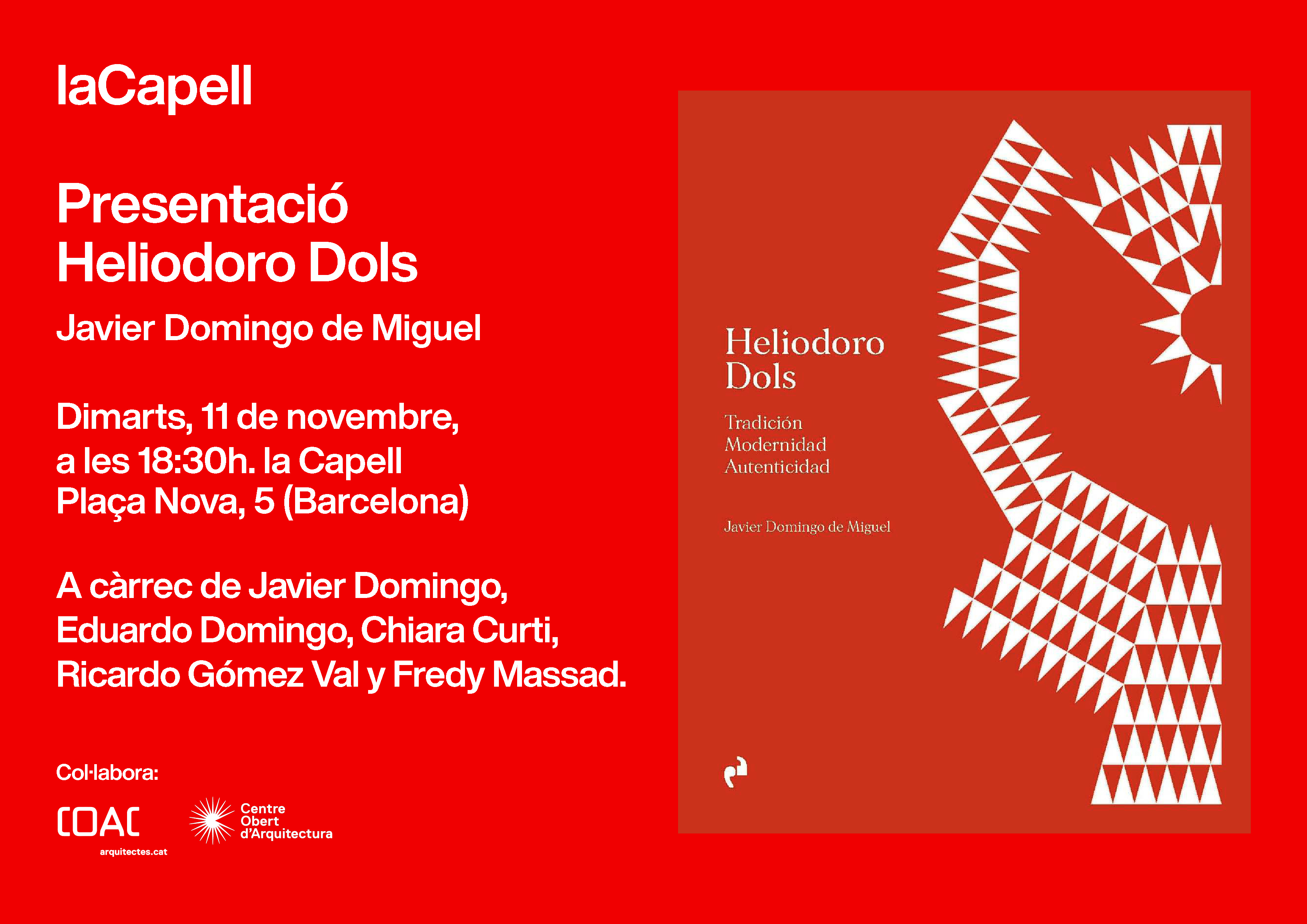 From : dimarts, novembre 11, 2025 To : dimarts, novembre 11, 2025 Venue : laCapell (Plaça Nova, 5)