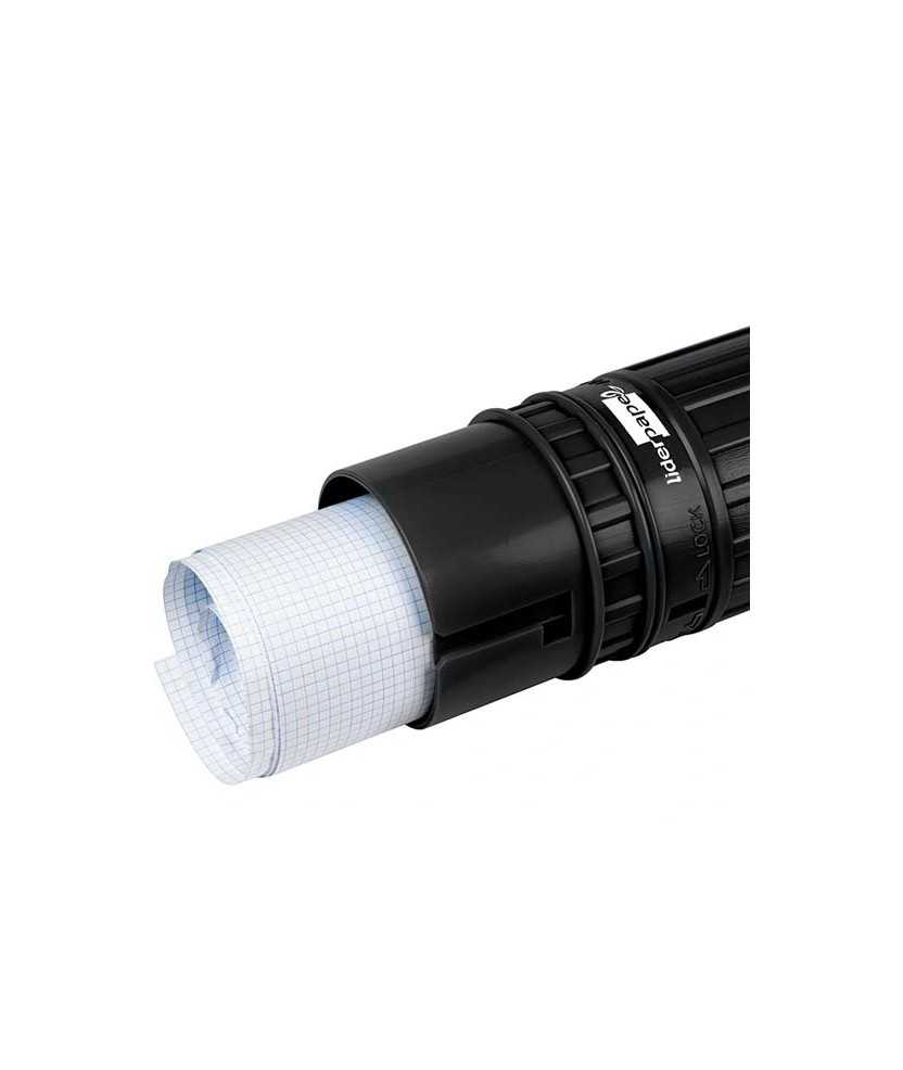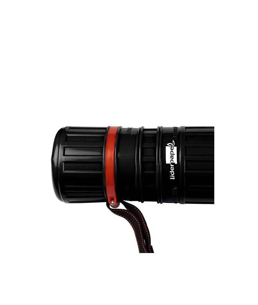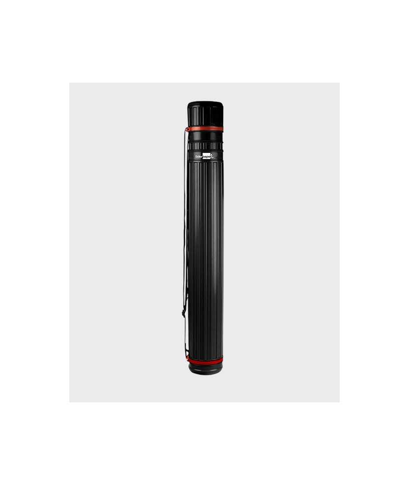 Portaplanos de plástico resistente color negro, extensible de 75 cm hasta 125 cm y diámetro de 9 cm. Incluye cierre seguro con tapa roscada y correa ajustable para facilitar el transporte. Ligero e ideal para proteger planos y documentos de gran formato.