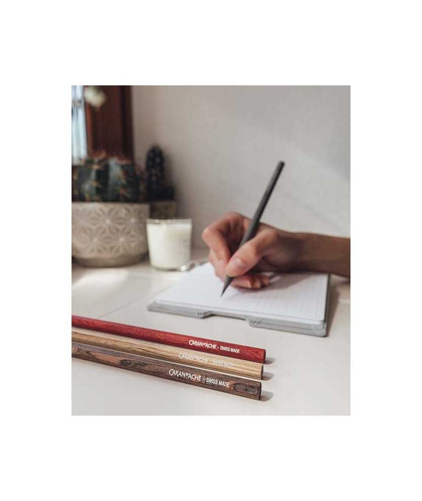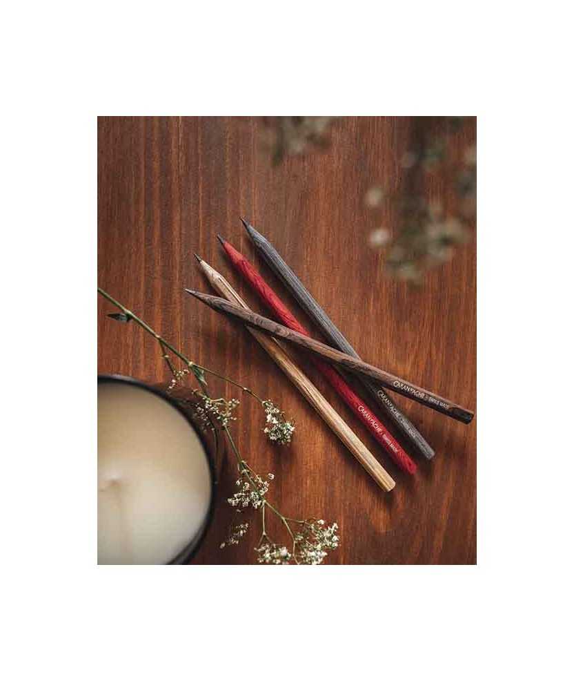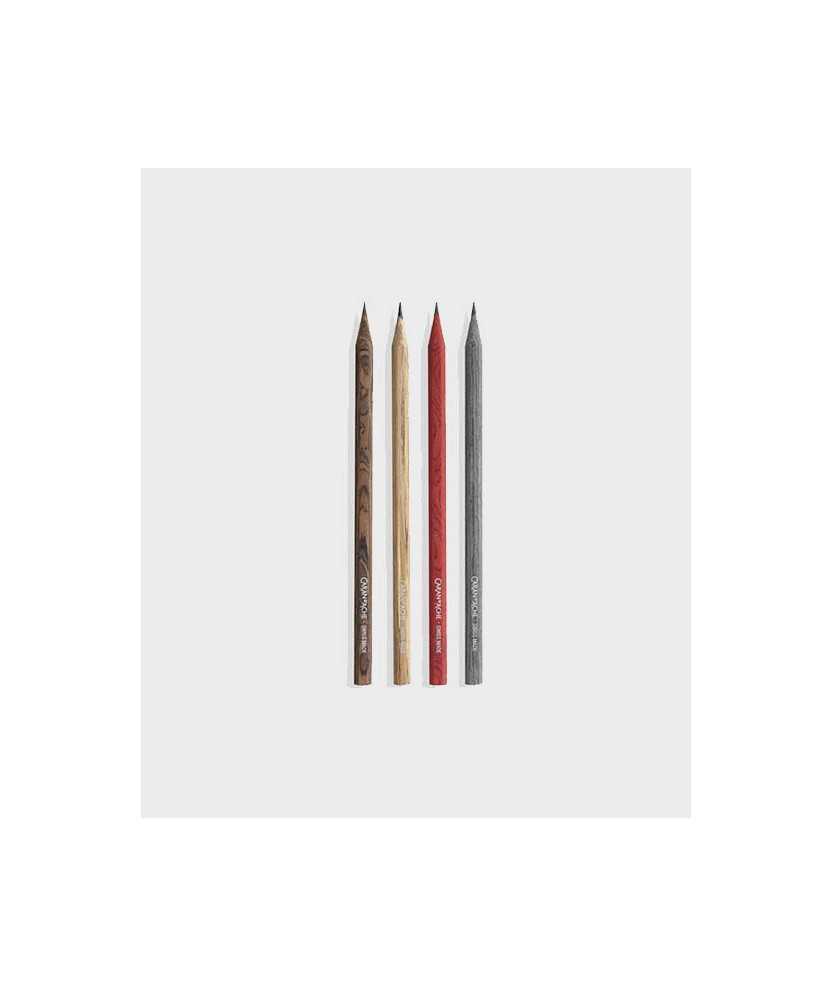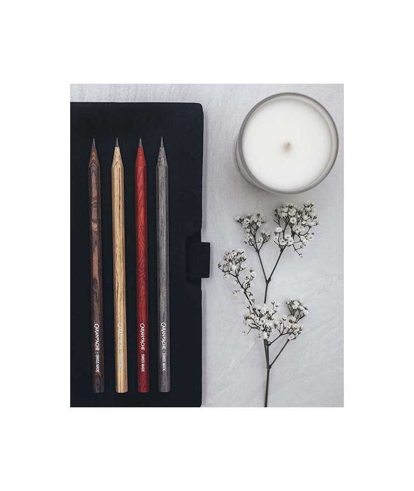 Estuche con cuatro lápices HB de madera perfumada con un aroma desarrollado con Alberto Morillas y Mizensir para evocar el espíritu de los Alpes, con pachulí, nuez moscada y toques de naranja.