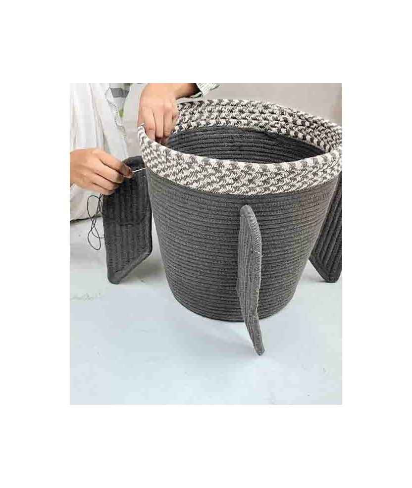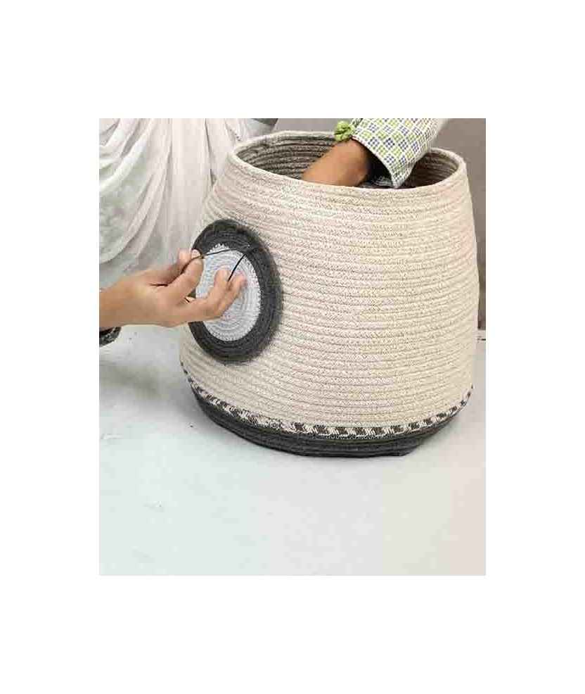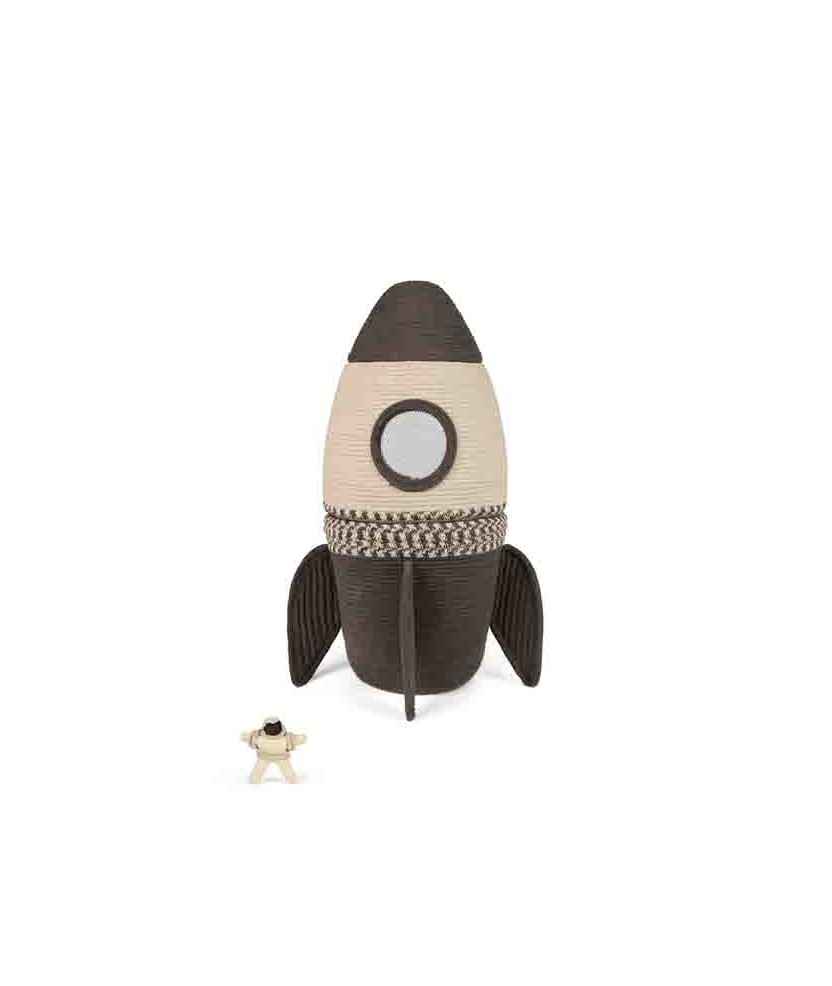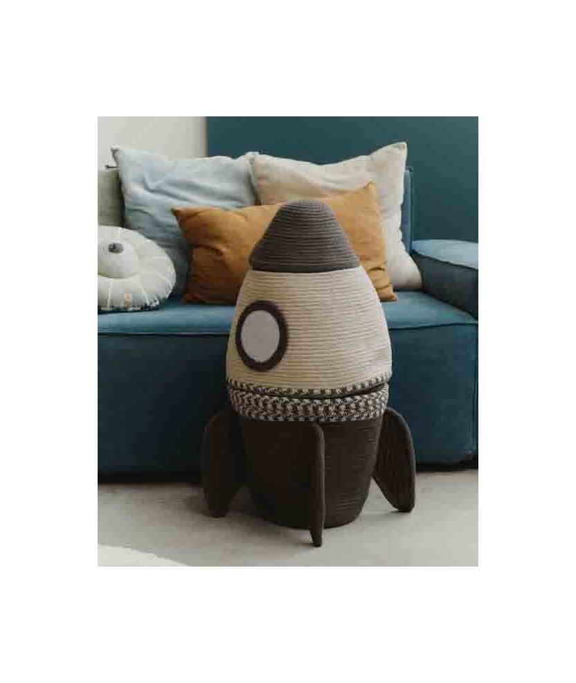 El cesto Cohete es una propuesta original que combina diseño, sostenibilidad y diversión. Consta de tres cestas apilables que se transforman en una nave espacial lista para viajar por la galaxia. Fabricada a mano con cuerda de algodón y plástico reciclado de botellas PET, es robusta y resistente. Incluye un mini astronauta textil para añadir más imaginación al juego. Una cesta única que ofrece funcionalidad y juego creativo a la vez. Producto sostenible y hecho a mano. Medidas: 43x43x68 cm.
