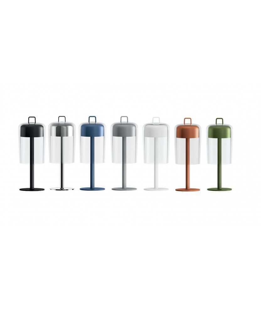 No se trata de una mera lámpara de bateria, inalámbrica, que se puede col·locar en cualquier sitio, sino de una luz que puedes llevar contigo a todas partes, dondequiera que vayas. On/Off táctil. Varios colores y modelos disponibles. Medidas: 16x16x31,3 cm.