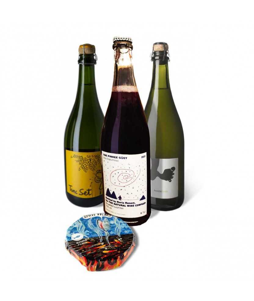 Un lote alternativo para llegar más allá de lo ecológico, para saborear lo que es más natural, crudo, una relación directa con el origen. Alimentos naturales, sin orquestra ni artificios. Incluye una lata de mejillones a la brasa Güeyu Mar, braseados con madera seca de eucaliptus y enlatados con escabeche y tres botellas de vino: The Pinkee Güey 2021 (Nuria Renom. Tempranillo 60% y Muscat de Alexandria 40%), Ancestral Xarel·lo (Joan Rubió. Xarel·lo 100% ) y Tinc Set (Mas Candí. Xarel·lo 60% i Parellada 40%).