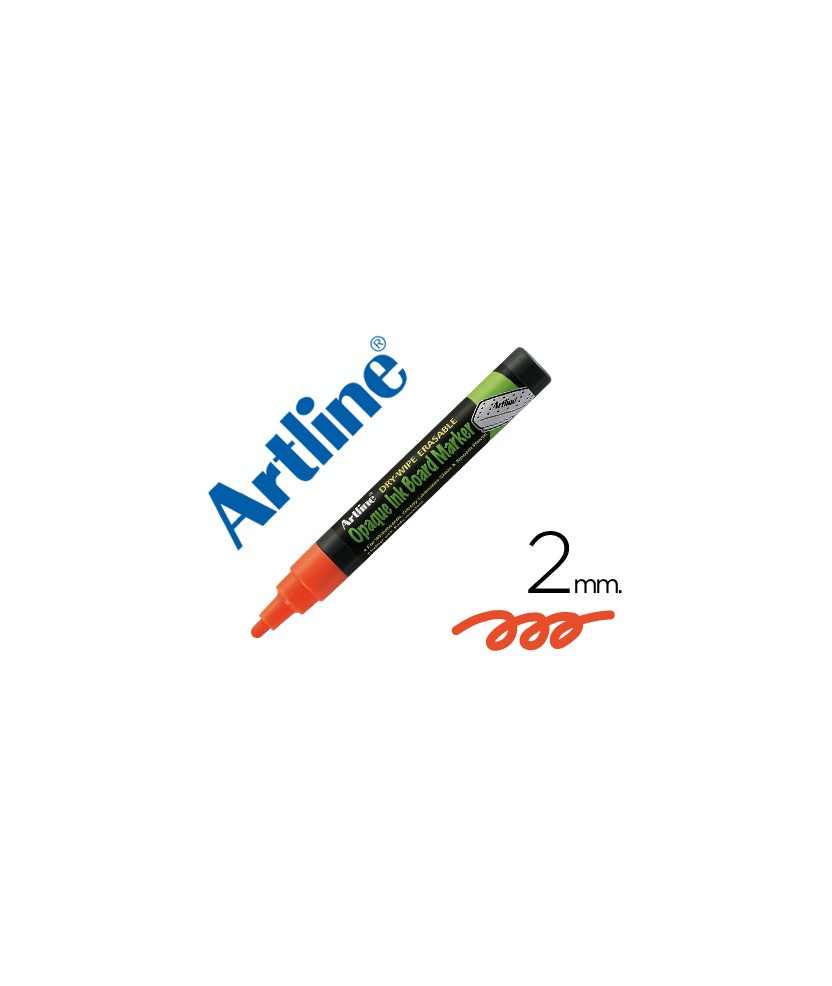 Rotulador artline pizarra verde negra epw-4 na color naranja bolsa de 4 unidades . Rotulador de punta cuadrada de fibra acrílica. Para todo tipo de pizarras negras, verdes, cristal y plástico. Uso exterior o interior. Borrable con una bayeta húmeda. Longitud de escritura: 250 - 350 m. Trazo aproximado: 2 mm.