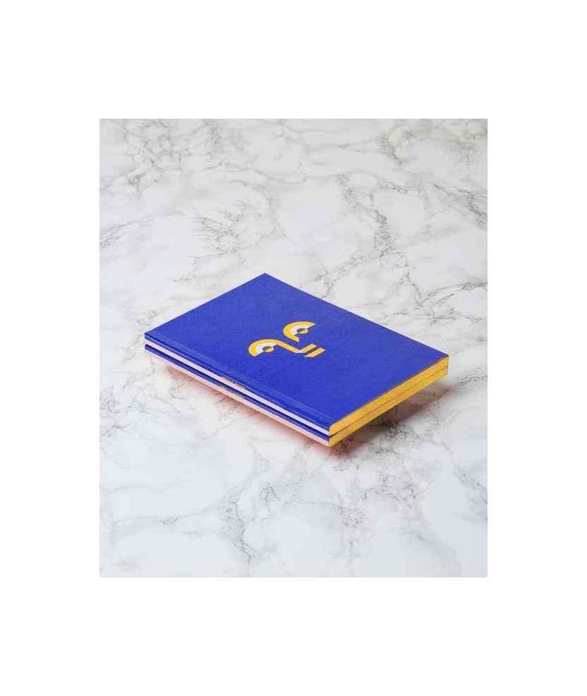 Cuaderno liso A5 de 128 páginas con tapa blanda y diseño inspirado en la mitología griega. Representa a Apolo con estampado a doble cara en tonos azul y rosa. Papel blanco de 100 g/m² con cantos dorados. Encuadernación rústica fresada. Hecho en Barcelona.