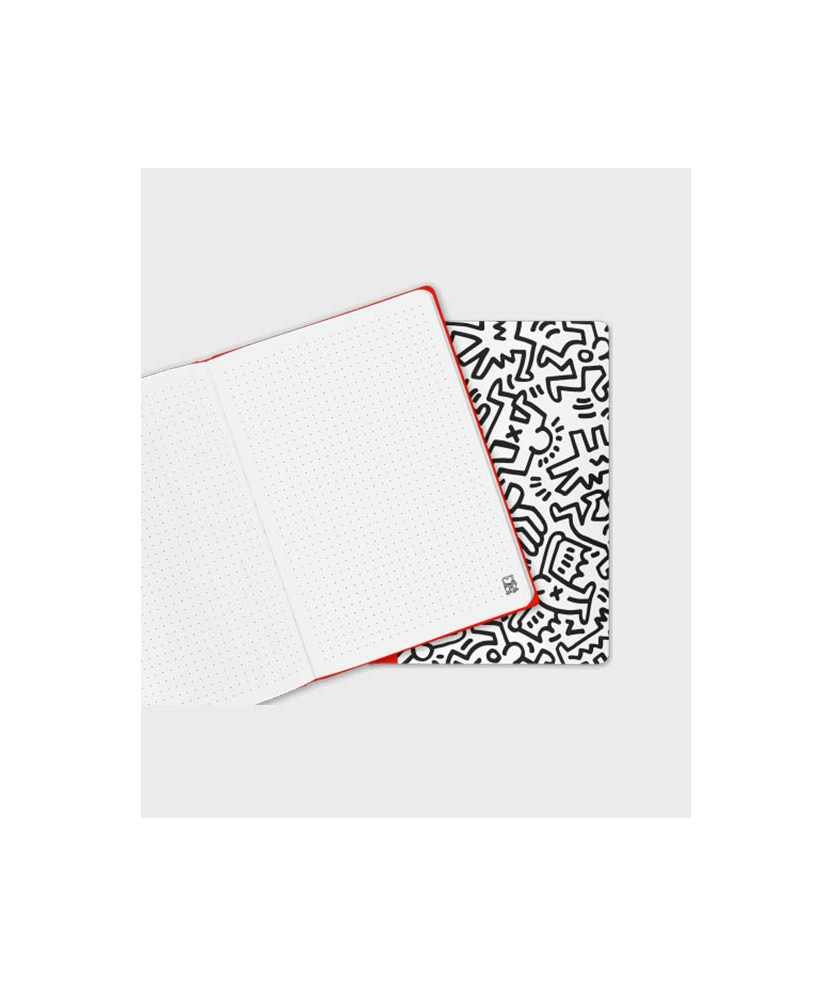 Libreta de 120 páginas de papel blanco con puntos de 90 g/m y tapa dura decorada con uno de los diseños de Keith Haring. Pertenece a la edición especial Caran d'Ache+Keith Haring, una colección intergeneracional y simbólica que recurre a los patrones emblemáticos de este artista pop para celebrar el amor y el arte. Desde dibujos con tiza blanca en el metro hasta pinturas en paredes públicas, Haring expresa un lenguaje universal en el que las formas enfatizan la apertura de un mensaje. Medidas: 21x14,8 cm.